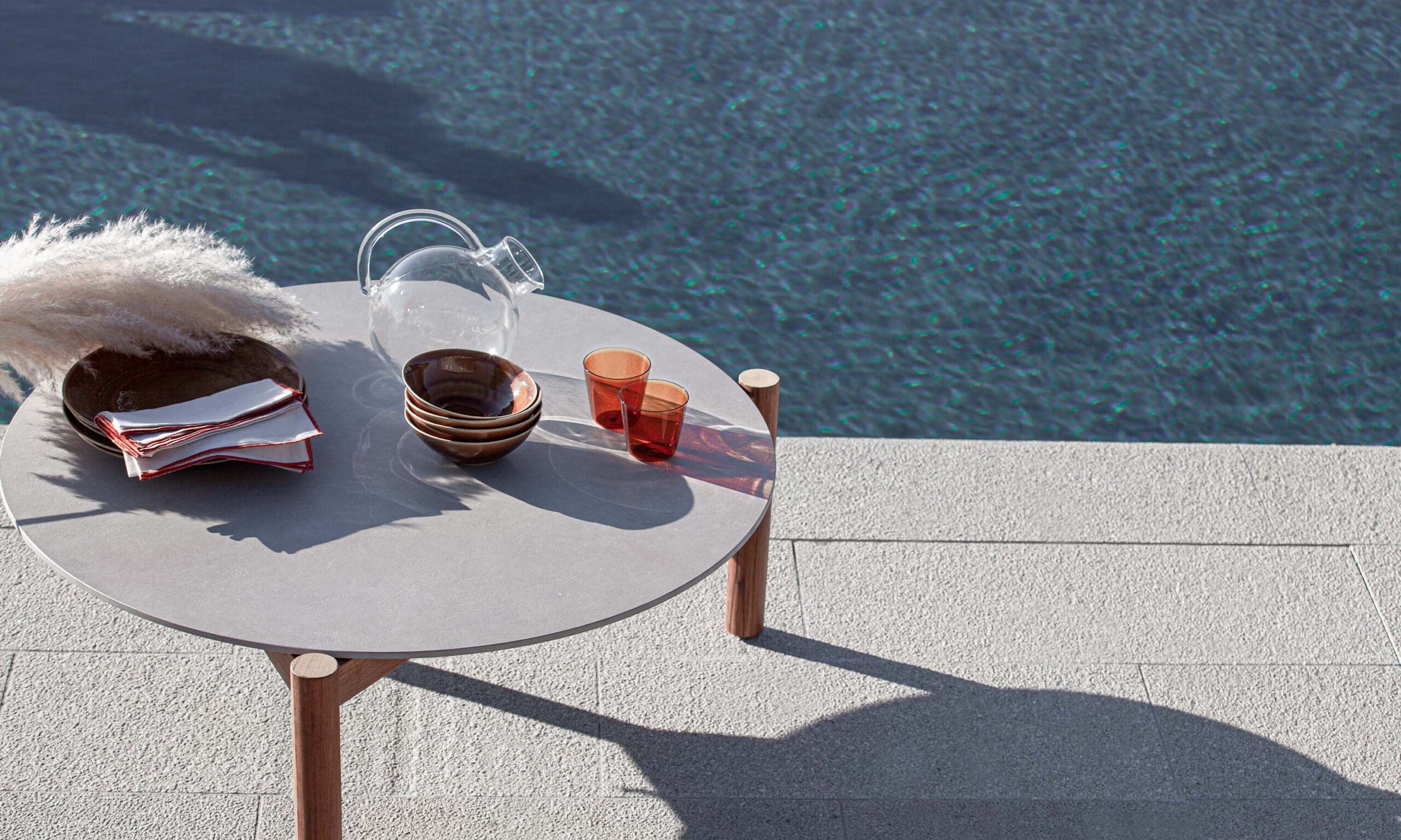 Столы Lodge из массива тикового дерева сочетают в себе дизайн и функциональность. Прочная конструкция подчеркивает естественную красоту дерева, а столешница, выполненная из керамогранита или глазурованного лавового камня, придает элегантность и долговечность, идеально подходящую для любой обстановки.