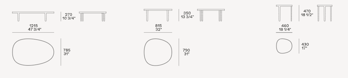 Коллекцию мягкой мебели Mad Out, разработанную Марселем Вандерсом, завершает одноименная серия журнальных столиков. Столешница из лавового камня, имеющая два различных оттенка, которые получаются при высочайших температурах обжига, может быть украшена декором из стеклянной пудры, создающим интересный контраст между матовыми и блестящими поверхностями.