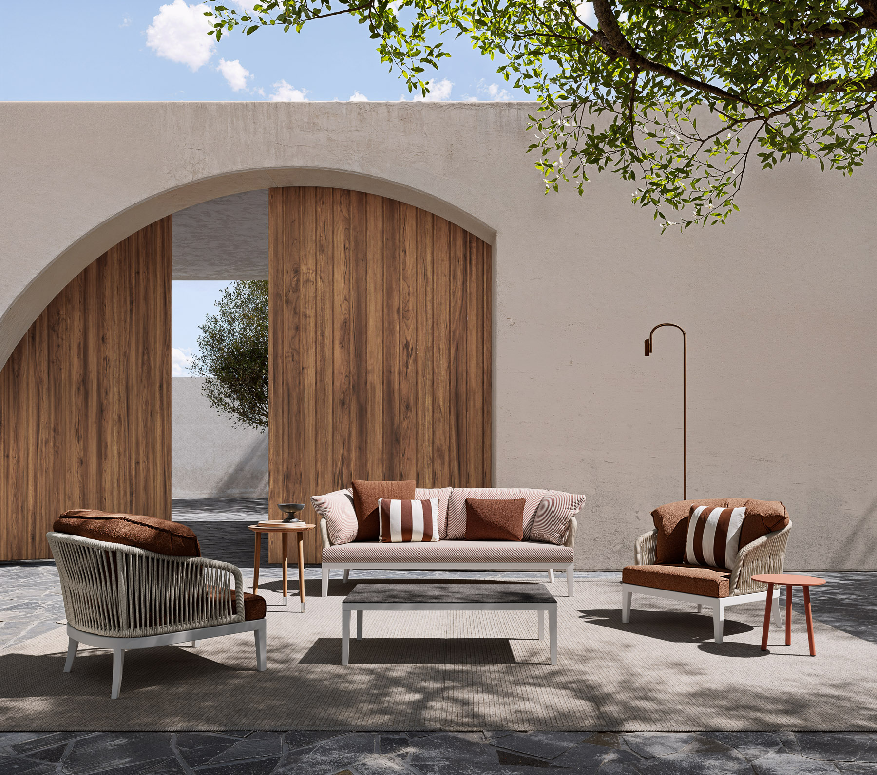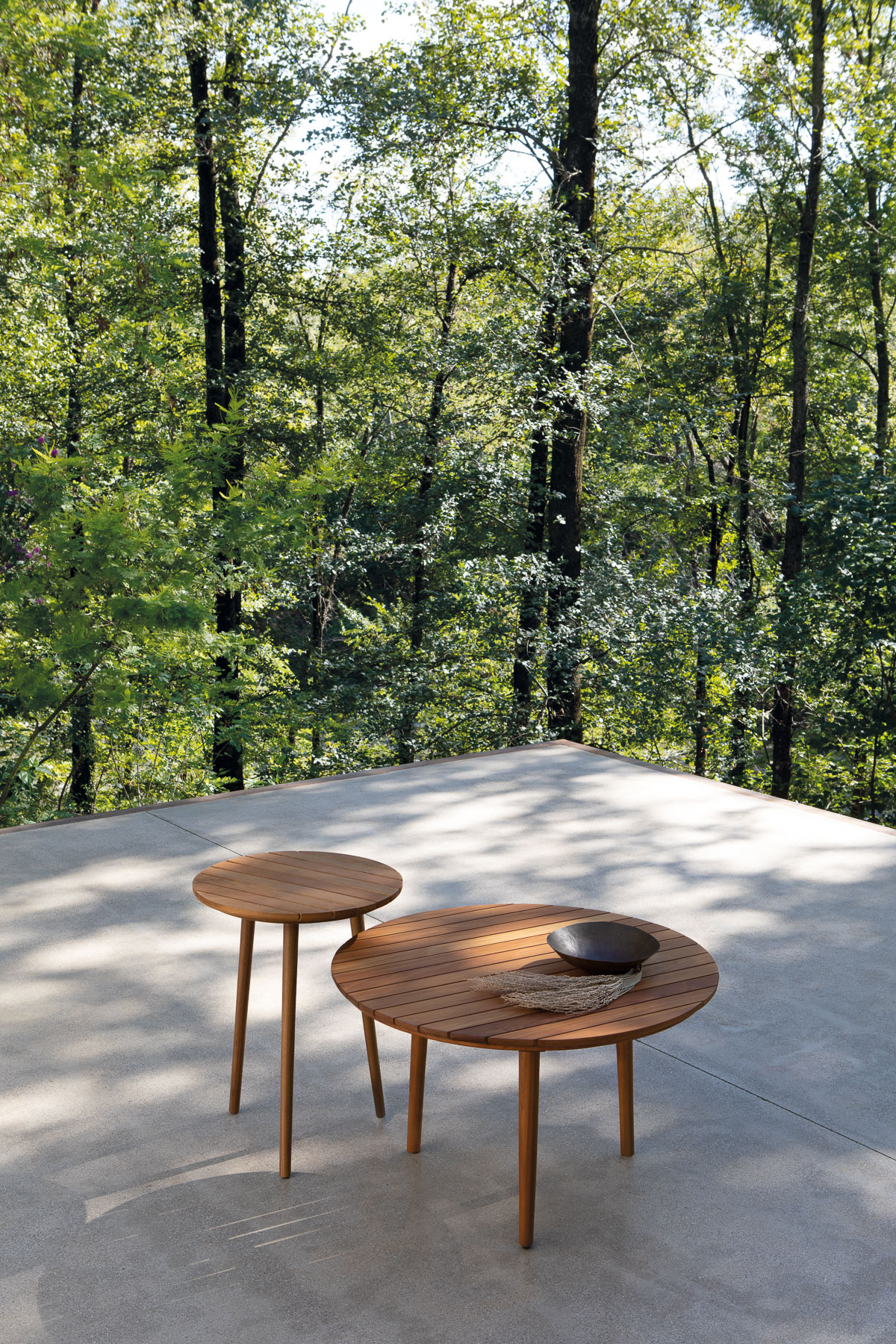 Массивные рамы из азиатского тикового дерева с масляной отделкой; детали из матовой стали.