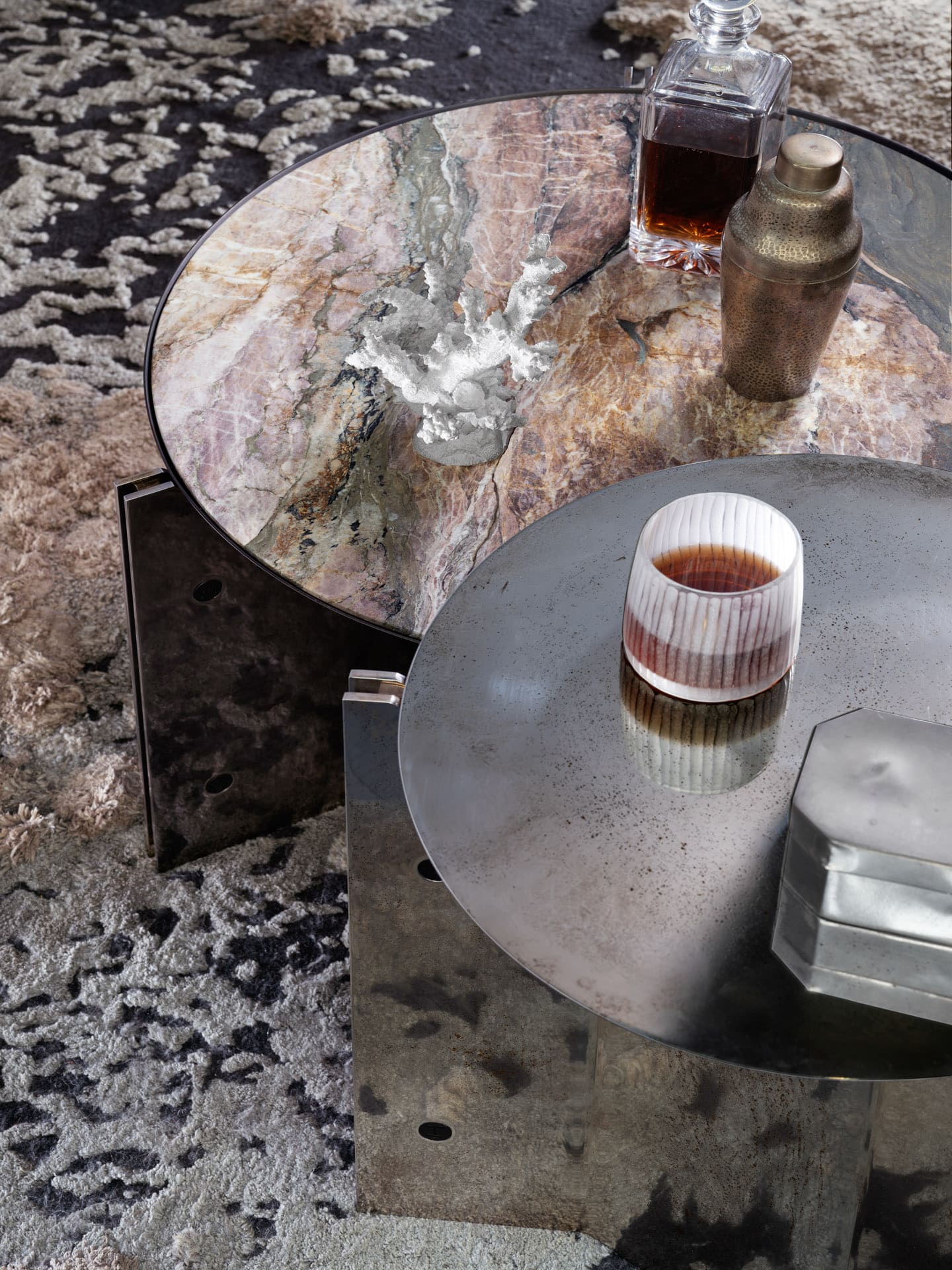 Журнальный столик Muse подчеркивает поразительный визуальный контраст дополнительных сопоставлений. Строгие и органичные линии, мелодичный диссонанс металла и камня подчеркивают приверженность бренда уникальности.