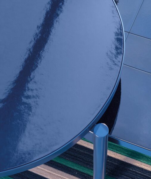 Цельный круглый пол из глазурованного керамогранита, опирающийся на три ножки из окрашенного алюминия, является идеальным дополнением к мебели для практичной и изысканной жизни.