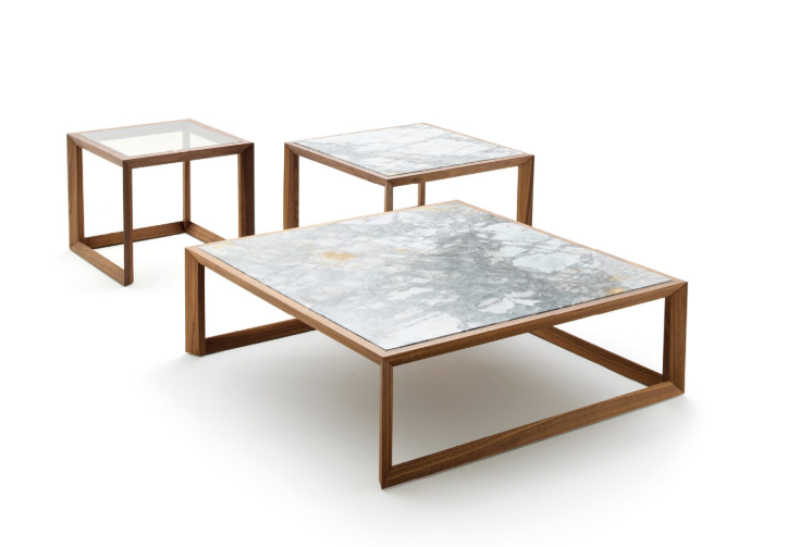 Структура: Массивная рама из американского ореха с открытым отделением для хранения таких предметов, как пуфы. Верхний: Представлен широкий выбор эксклюзивных изделий из мрамора, кожи и дерева.