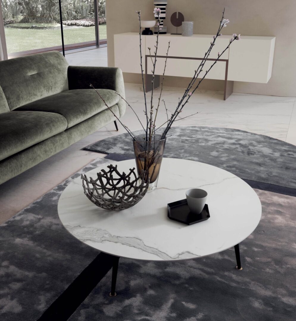Серия журнальных столиков для гостиных со столешницей из МДФ, покрытой матовым лаком, стандартной металлической или керамической отделкой. Ножки из металла с оловянной отделкой, металлические ножки с круглой латунной ножкой. Столешница из керамики имеет оловянную отделку.