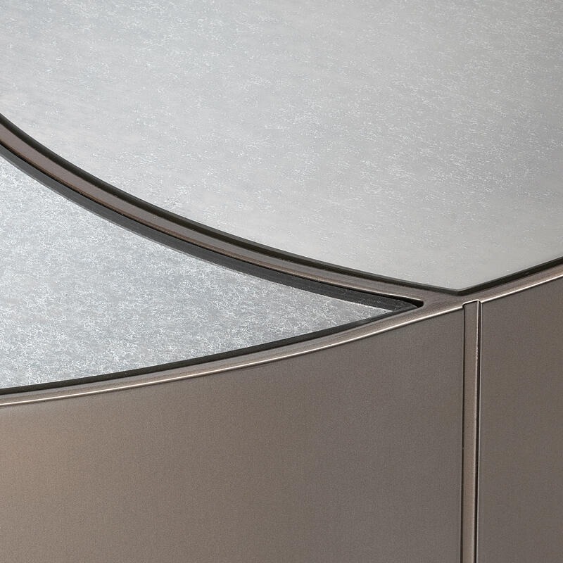 Многослойная деревянная конструкция с окантовкой, окрашенной в цвет лакированного ствола.
