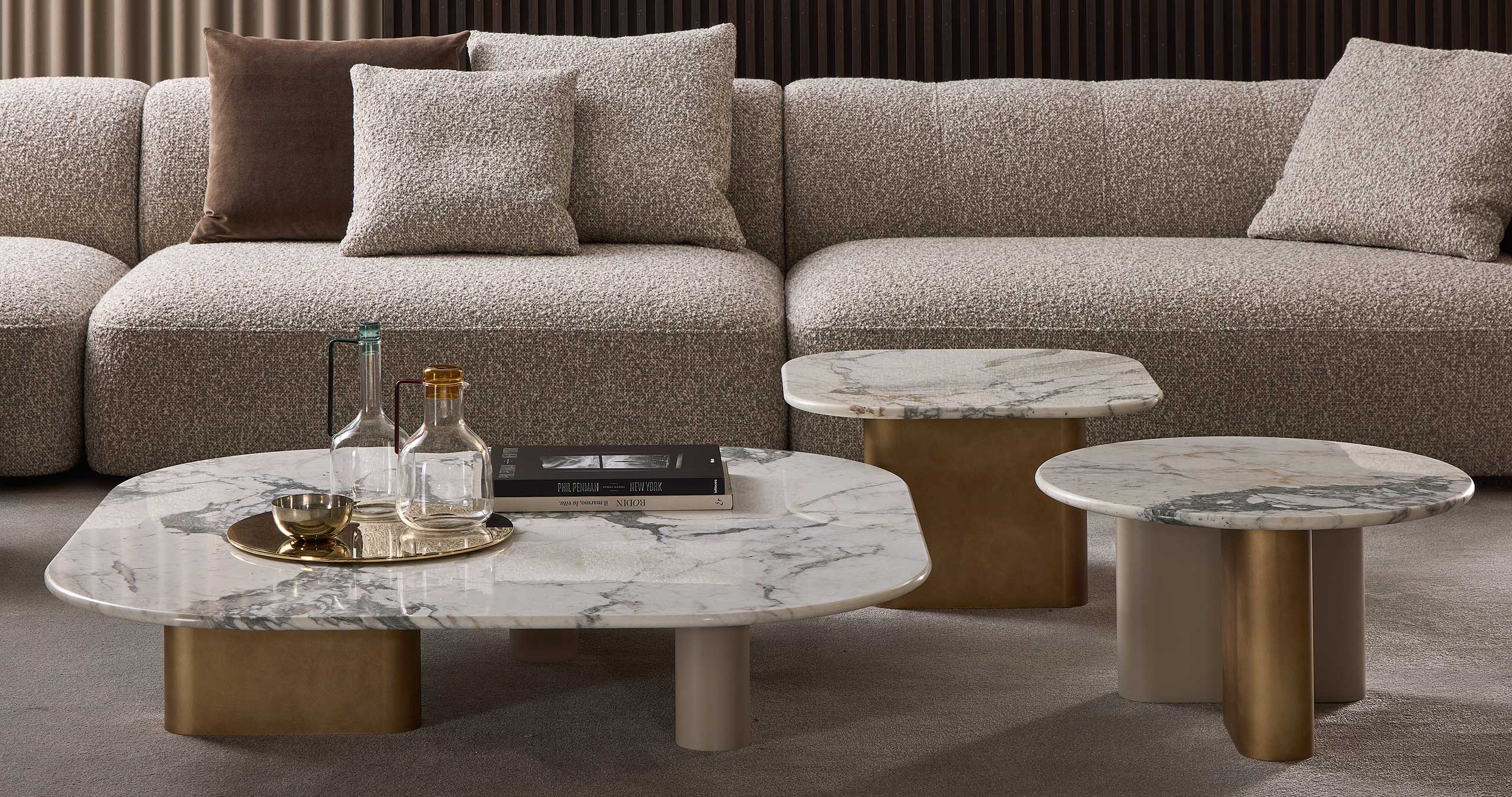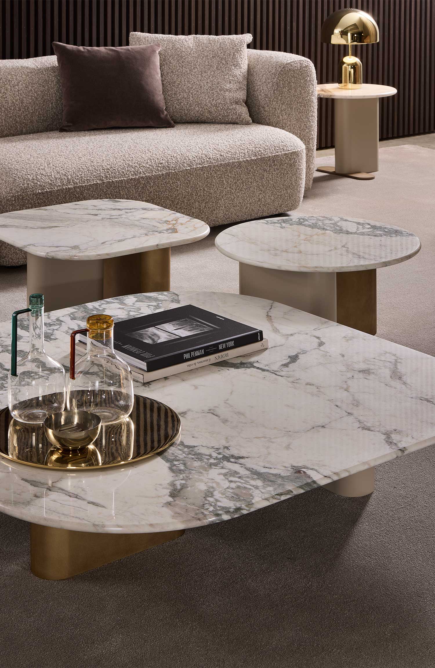 Итальянский столик Onno от Giulio Marelli – элегантное решение для современного интерьера, сочетающее скульптурные формы и премиальные материалы. Коллекция отличается органичным дизайном с закругленными ножками из дубового шпона или МДФ, которые создают эффект легкости и объемной игры.
