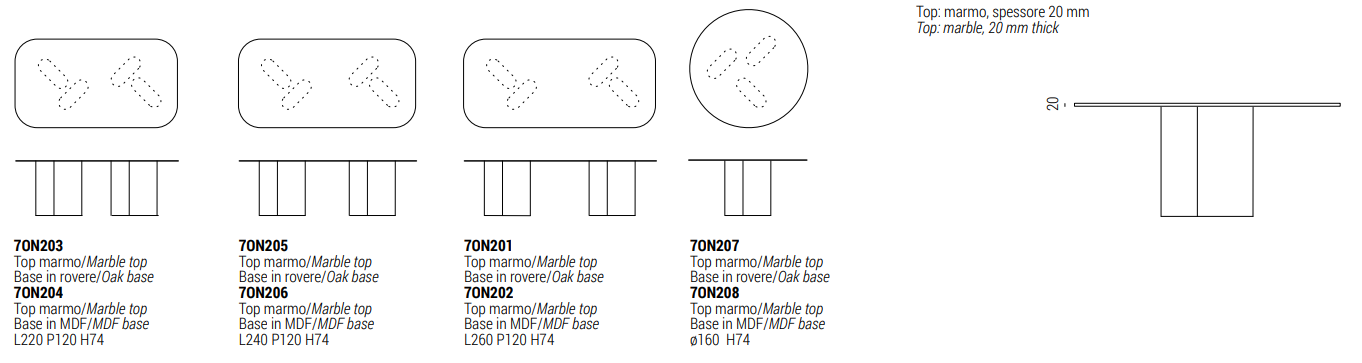 Ножки стола изготовлены из дубового шпона, который доступен во всех его цветах, или из МДФ и могут быть окрашены металлической отделкой delabrè или оловянной отделкой. Кроме того, вы можете выбрать лакированную отделку разных цветов RAL, предлагая дополнительные возможности настройки в соответствии с индивидуальными эстетическими предпочтениями.