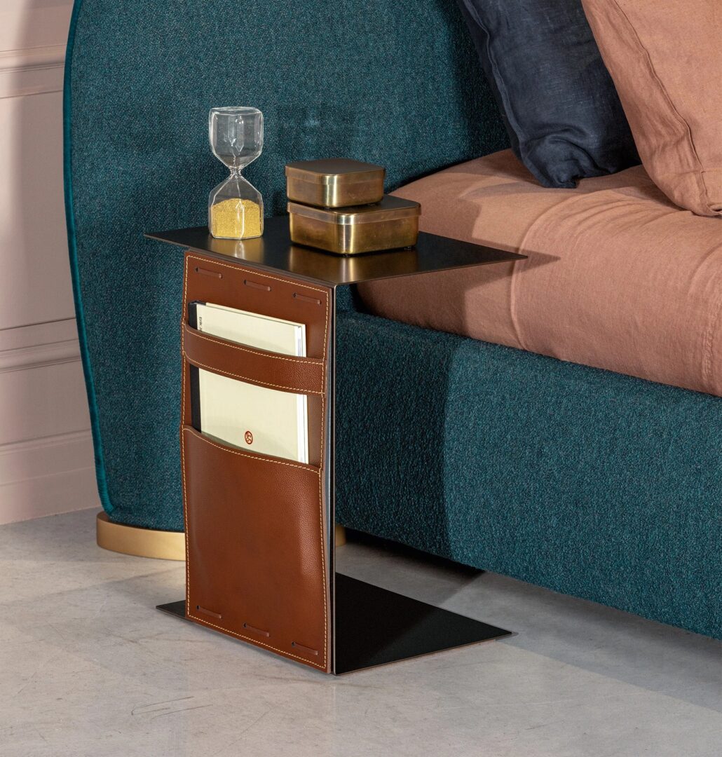 Opus-это многофункциональный серветто отличительного дизайна, сочетающий функциональную элегантность и стиль. Изготовленный из окрашенного металлического каркаса с бронзовой отделкой, Opus оснащен уникальным боковым карманом из коньяк-кожи.