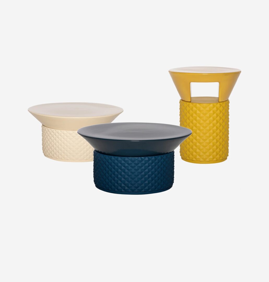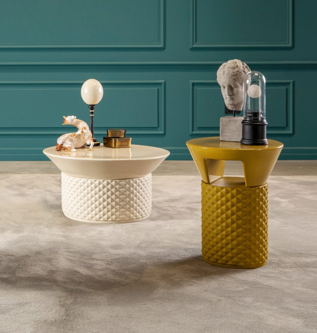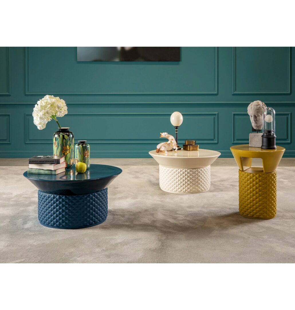 Уникальное сочетание текстуры, цвета и дизайна: palmbeach, новое универсальное семейство матовых керамических журнальных столиков в сочетании с глянцевой глазурью или тонкой отделкой из полированного золота. Две безошибочные формы с сильной индивидуальностью для журнального столика и сервлета, также доступны с рассеивателем света и в различных размерах с матовой отделкой и глянцевым верхом.