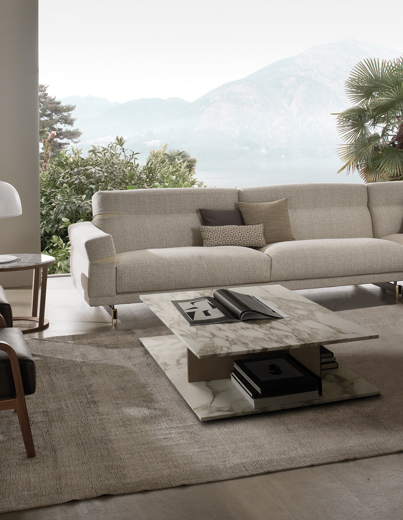 Журнальный столик со столешницей и основанием из мрамора или натуральной кожи; рама обтянута натуральной кожей. Журнальный столик Park, отличающийся строгими линиями, доступен в двух вариантах исполнения: квадратном или прямоугольном.