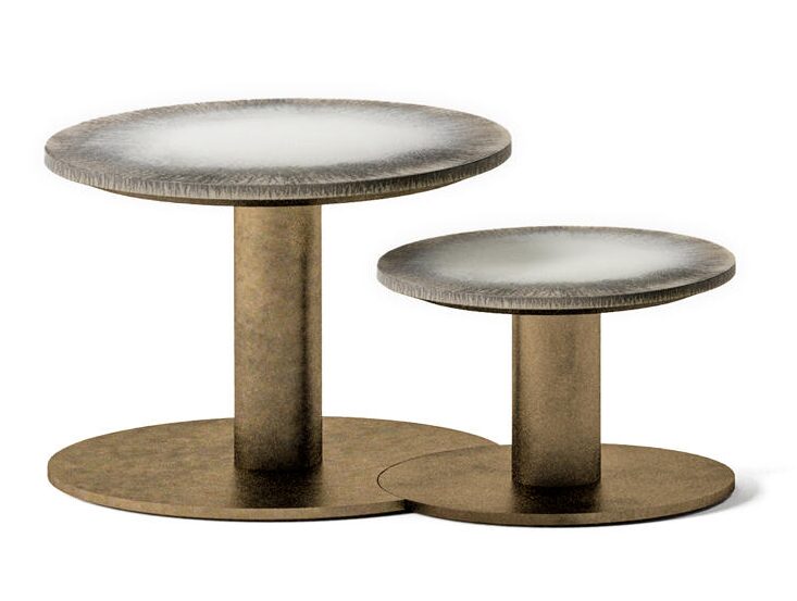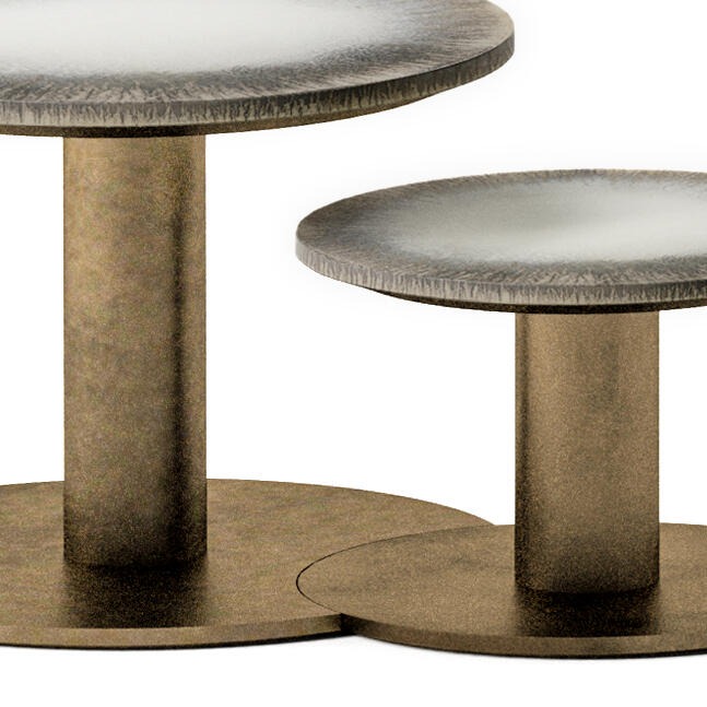 Двойной круглый стол. Конструкция из металла с отделкой из античной латуни.