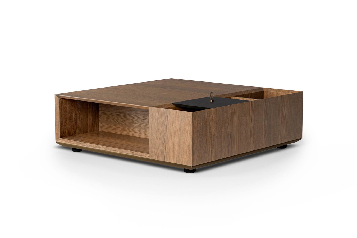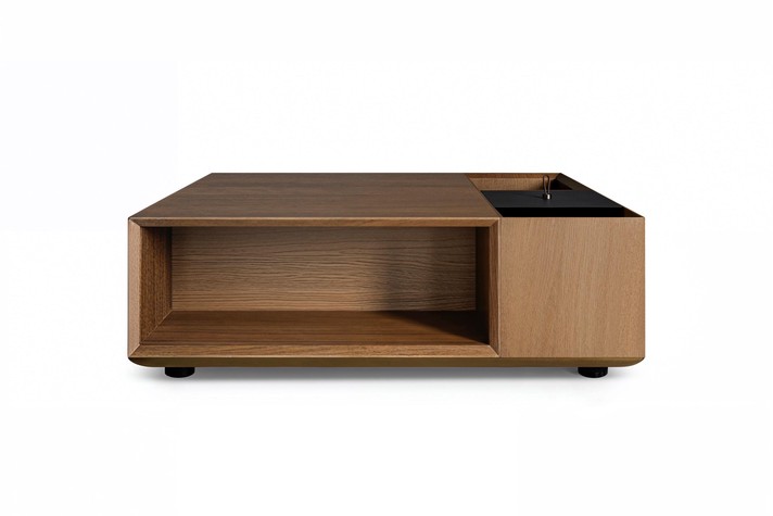 Современный квадратный журнальный столик для гостиной, состоящий из двух отдельных элементов из МДФ, облицованного ореховым шпоном canaletto. Идеально подходит для установки перед диваном или в качестве столика-моста между двумя мягкими сиденьями. Дизайн Микеле Мантовани.
