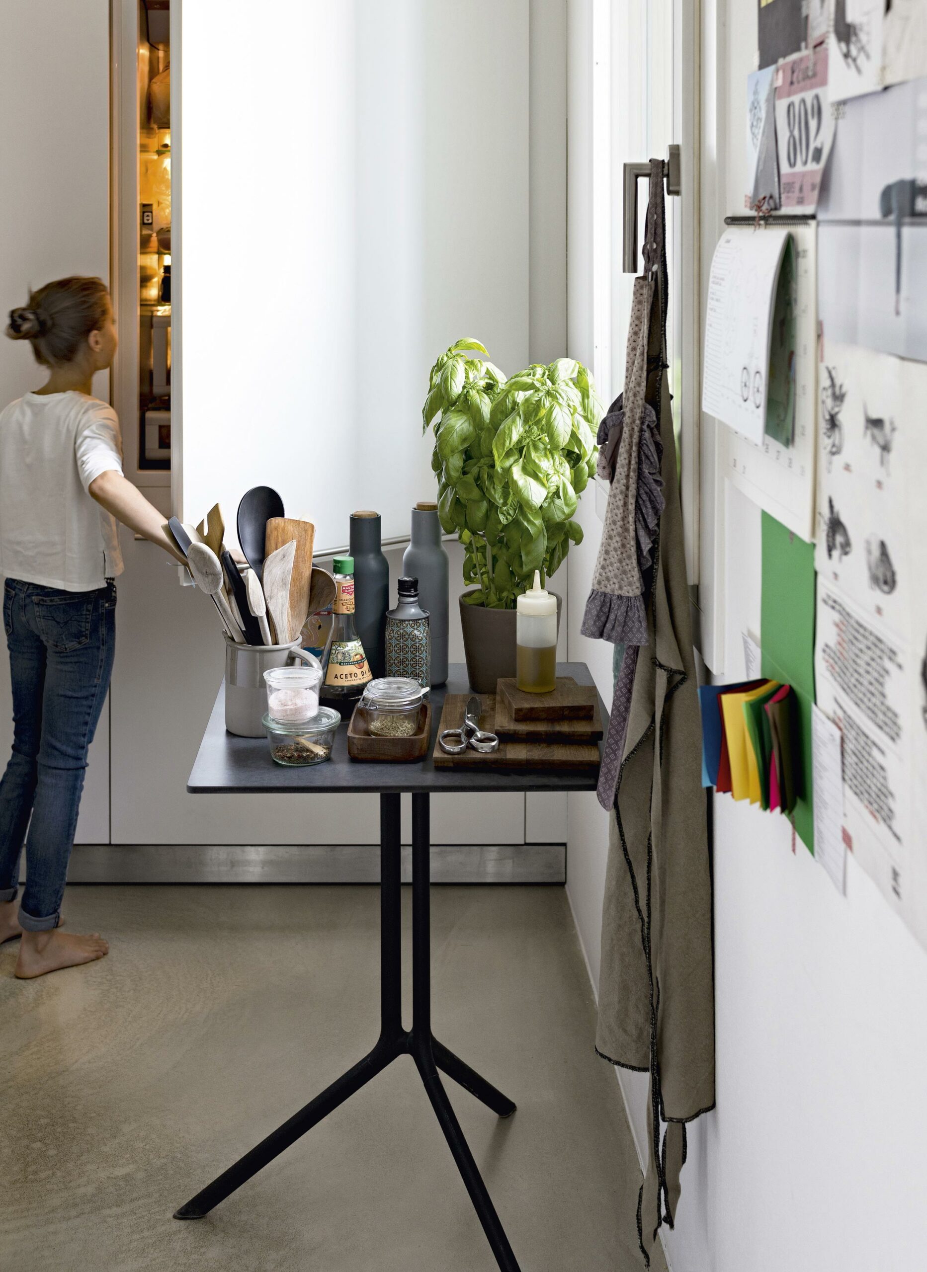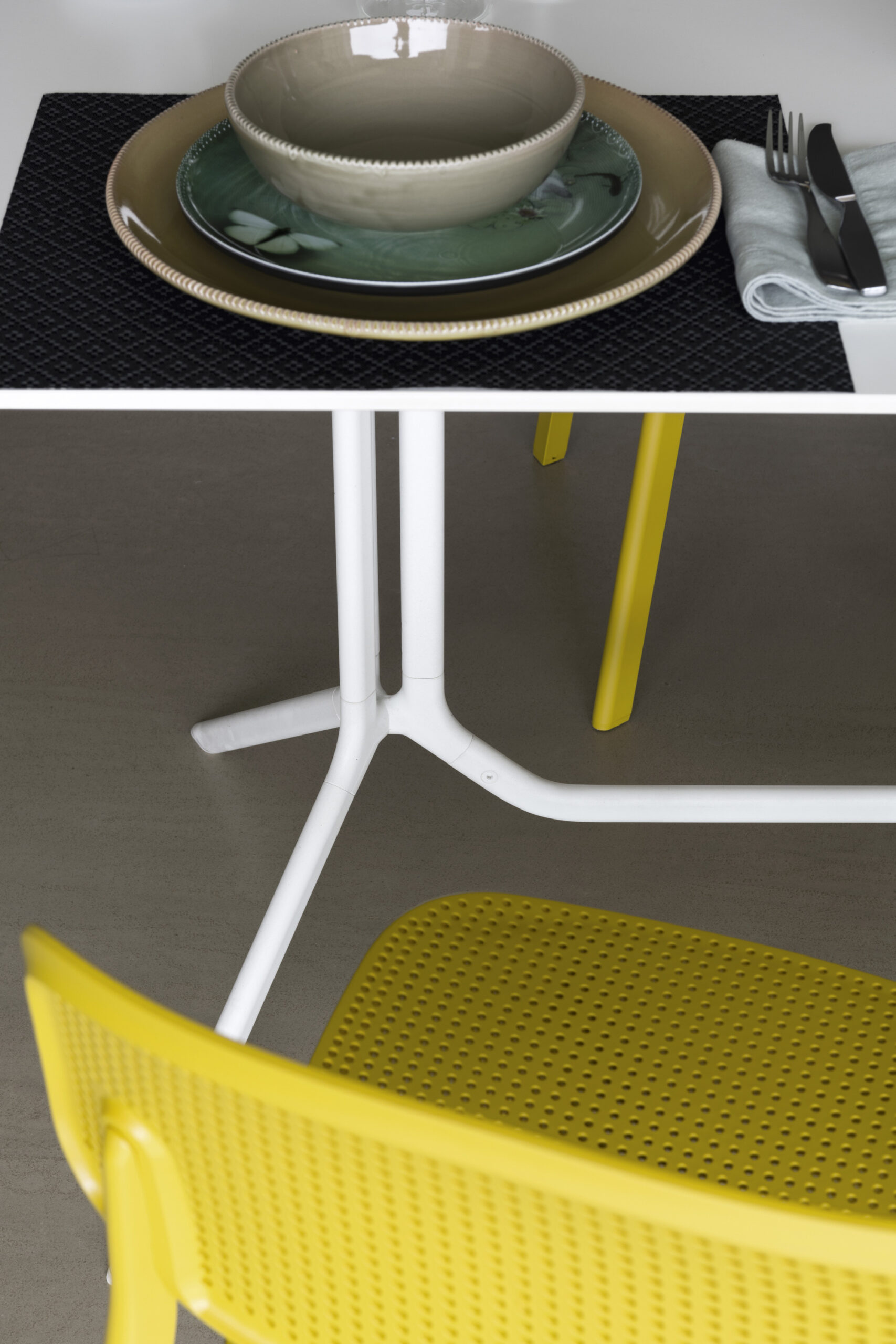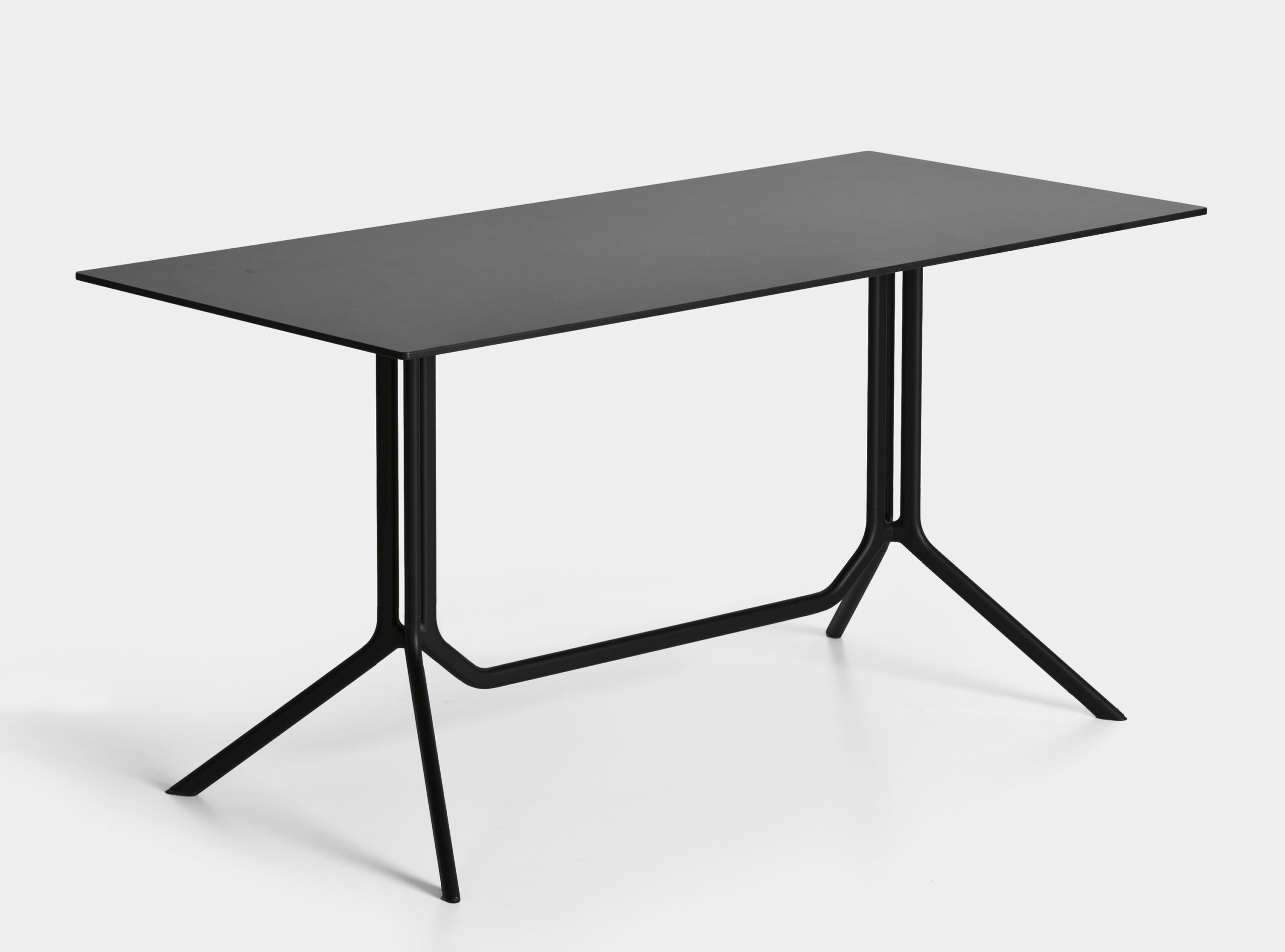Доступен в нескольких вариантах: с круглой, квадратной или прямоугольной столешницей из ламината или инновационного материала Fenix-NTM®. Алюминиевая подставка представлена в черном или белом исполнении.