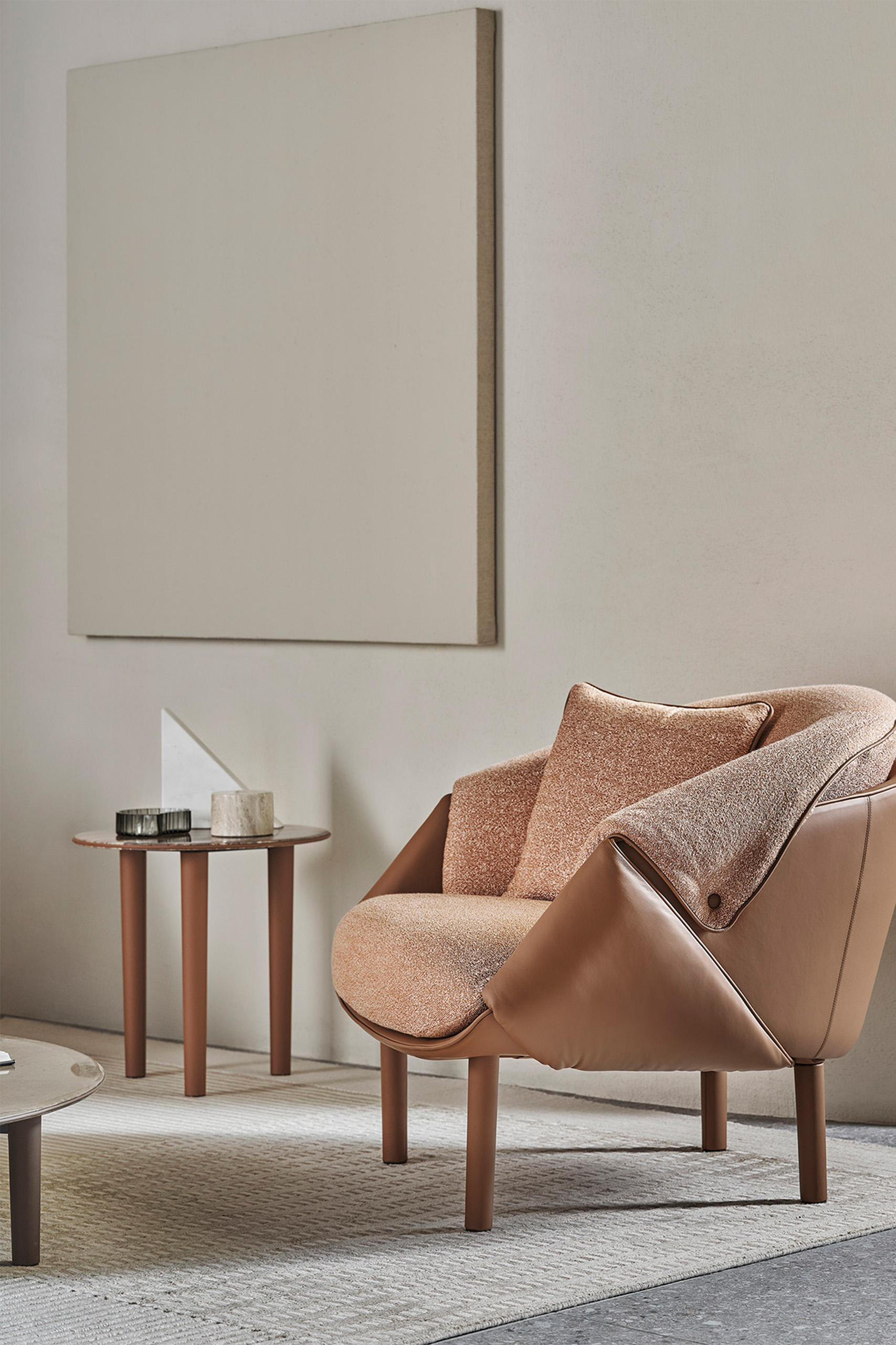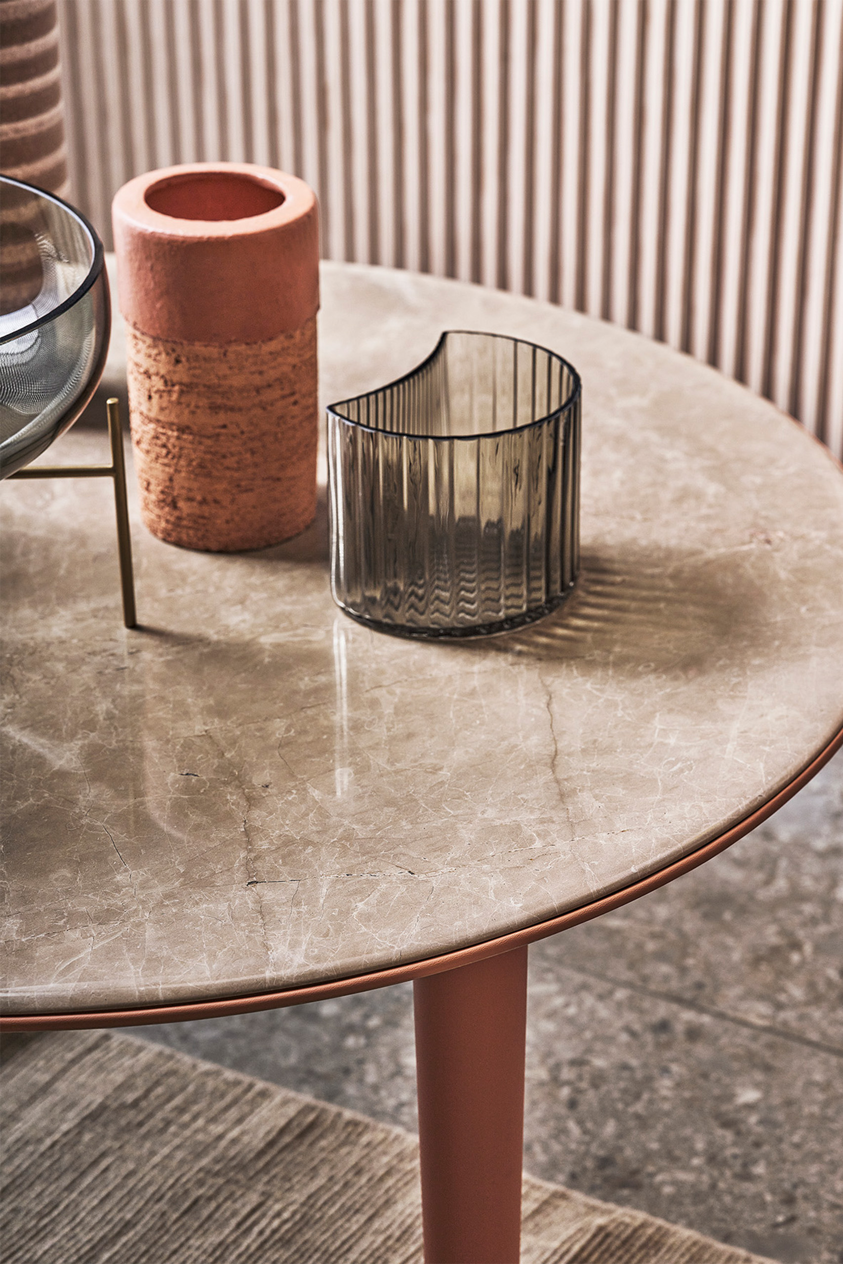 Коллекция Riban от фабрики TURRI отличается органичными, плавными формами, которые придают мебели легкость и динамику. Боковой столик Riban side повторяет эту философию: его округлые очертания визуально смягчают пространство, делая интерьер более уютным. Дизайнеры удели внимание каждой детали — от изгибов столешницы до изящных ножек, создавая идеальный баланс между современностью и классикой.
