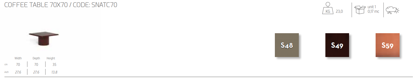 Журнальный столик Sofy collection H50 с четкими, но оригинальными формами дополняет и персонализирует пространство для отдыха под открытым небом. Полностью изготовленный из алюминия, он обеспечивает стабильность и устойчивость к атмосферным воздействиям.