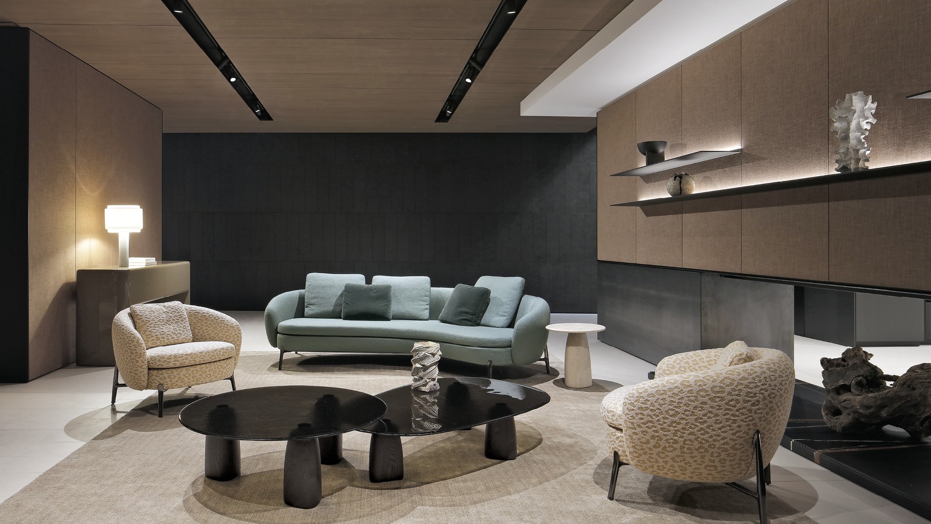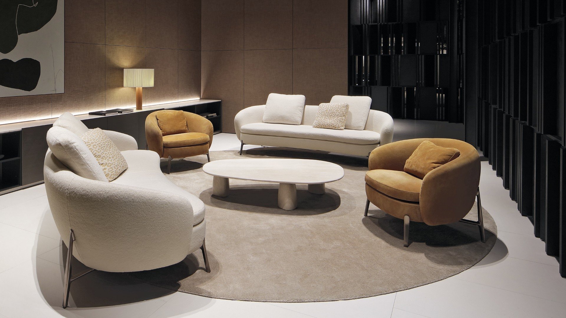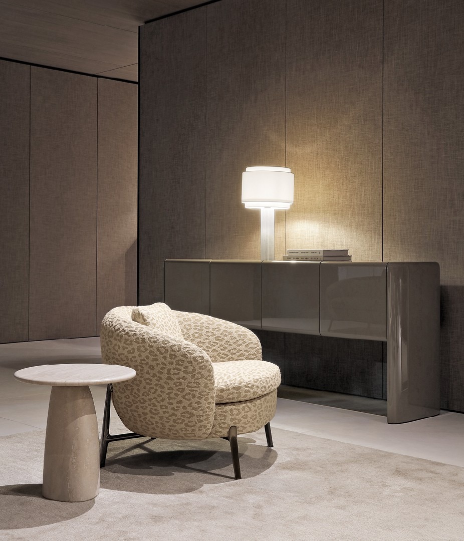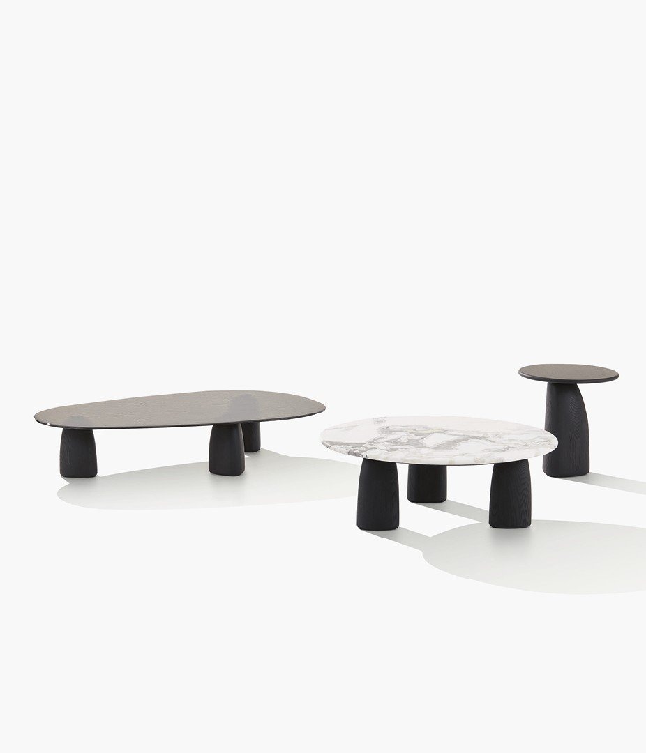 Столик Strata, изначально созданный в качестве элемента уличной мебели, представлен в версии для помещений. Модель дополнена ножками из черного вяза и столешницами из мрамора и стекла. Также есть вариант со скульптурным эффектом, полностью выполненный из травертина. Уникальность столиков Strata, доступных в разных размерах и в разной высоте, с круглыми или стандартными столешницами, особенно проявляется в сочетании с диванами коллекции.