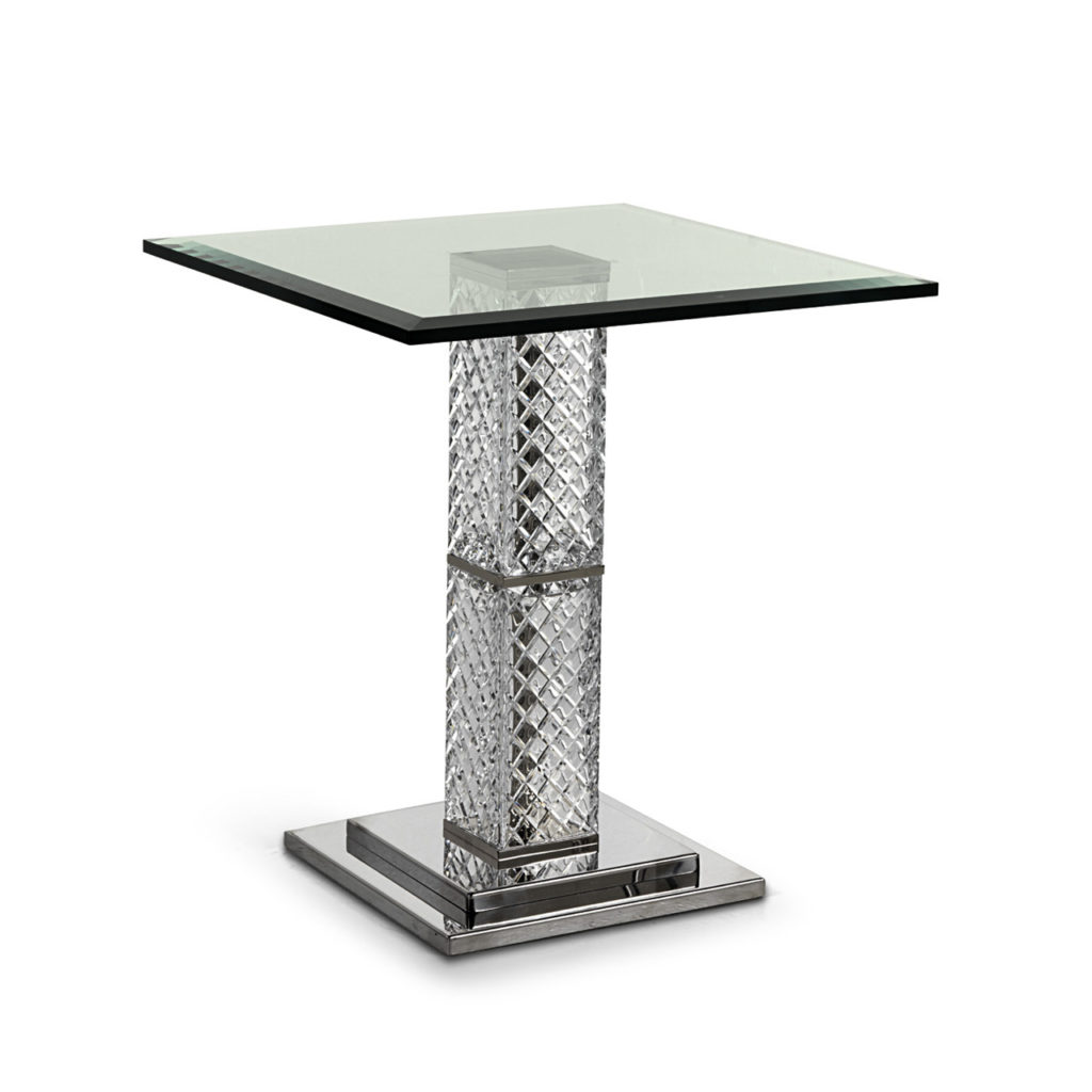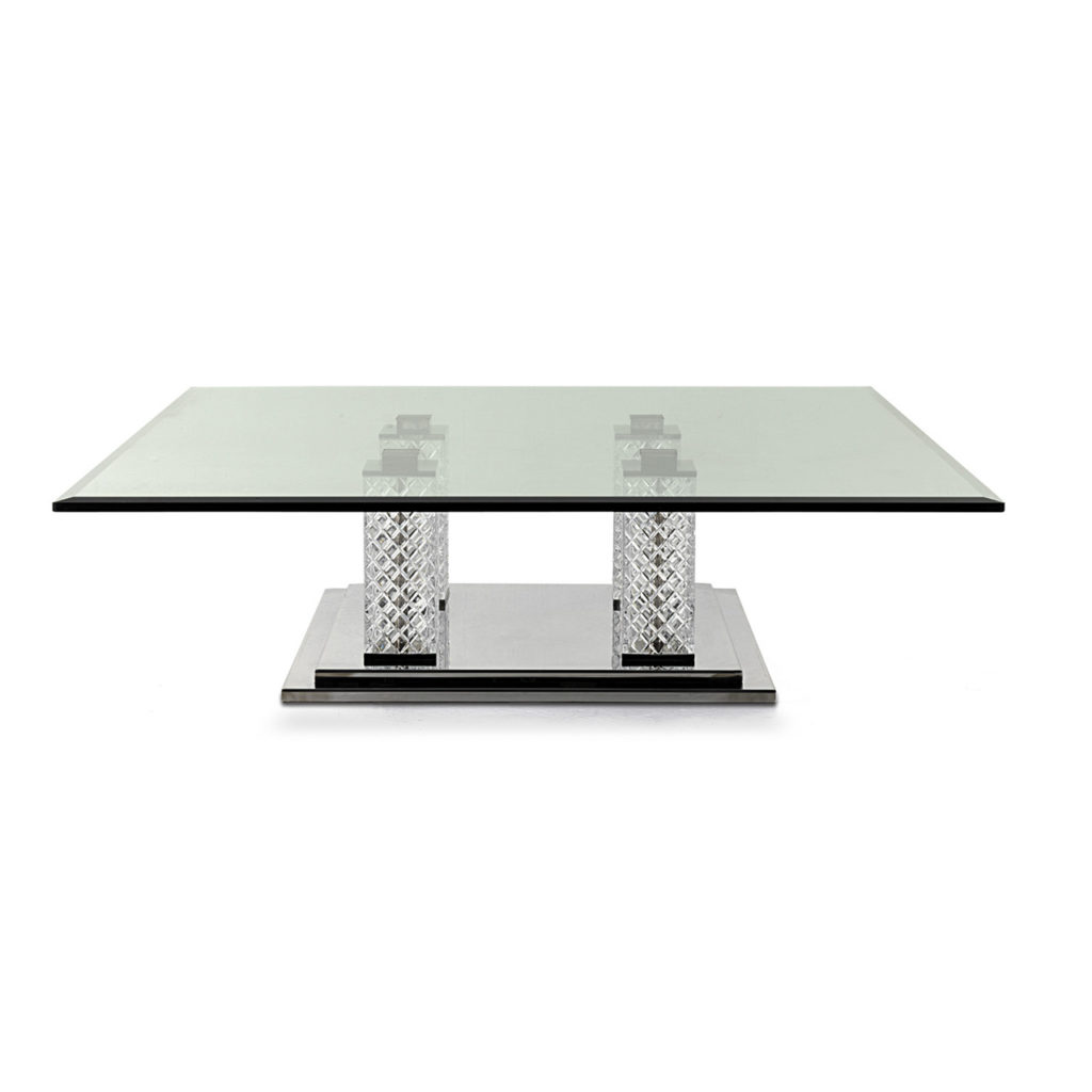 Элегантный набор журнальных столиков в современном стиле, состоящий из центрального журнального столика T103 / C, бокового журнального столика T103 / S со стеклянной столешницей, хрустальных оснований и структуры с никелевой отделкой.