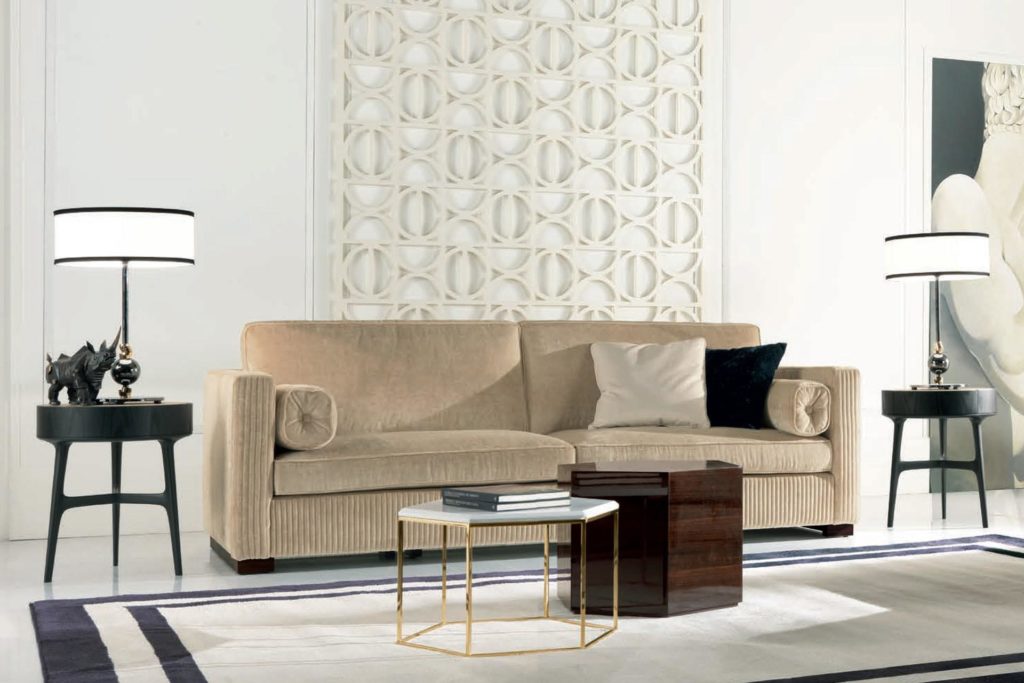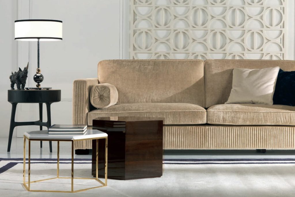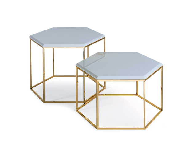 T178 — это набор шестигранных журнальных столиков с латунным основанием и мраморным верхом. Кажущаяся простота этих элементов становится настоящей красотой и скрывает их дизайнерскую и производственную сложность. Драгоценные золотые отделки наполняют атмосферу очарованием, придавая атмосфере гламурный и престижный Шарм.