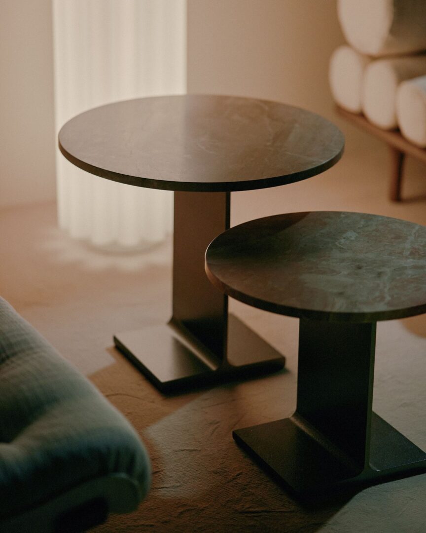 Низкий приставной столик Trono стимулирует взаимодействие дизайна и архитектуры, способствуя интересному диалогу между геометрическими формами, материалами и текстурами.
