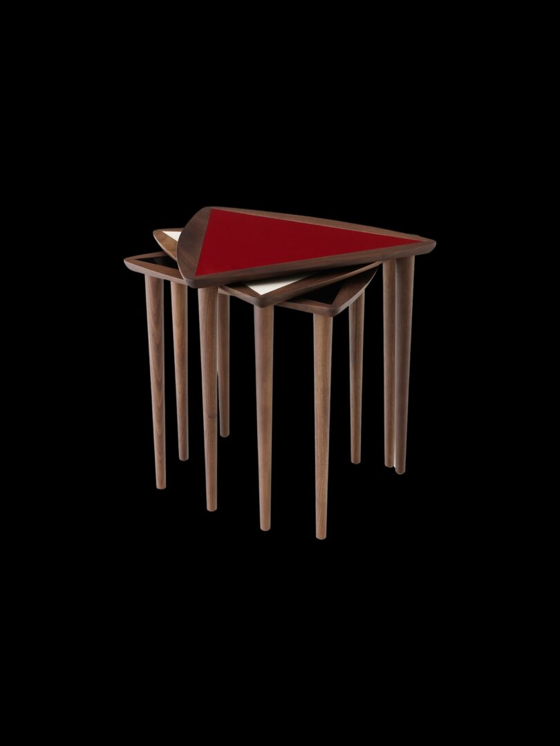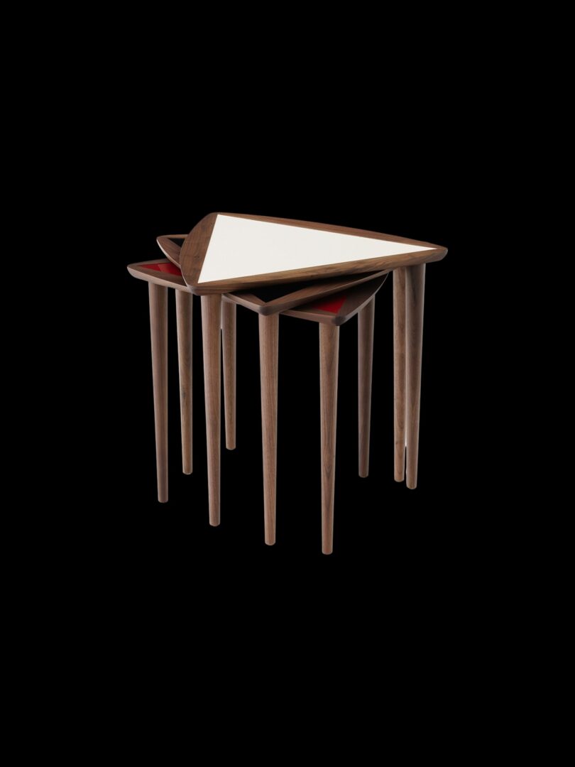 Приставной столик Umanoff Nestling, является штабелируемым и компактным решением для ограниченного размера помещения, а также прекрасным образцом современного дизайна середины века. Цветные ламинированные панели геометрической формы придают изящному дизайну из массива ореха декоративную и практичную нотку.