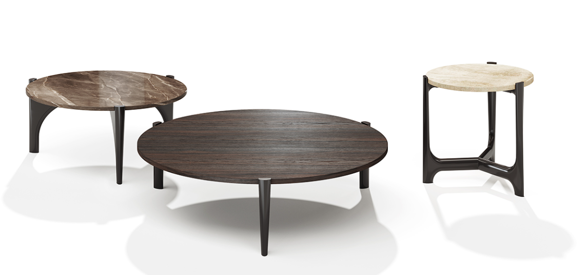 Семья характеризуется элегантной основой, которая интерпретируется двумя разными способами. Созданный знаком, который почти перевернут, он позволяет иметь два типа структур, на которых они установлены сверху из разных материалов. Один и тот же язык для универсального и изысканного сочетания элементов.