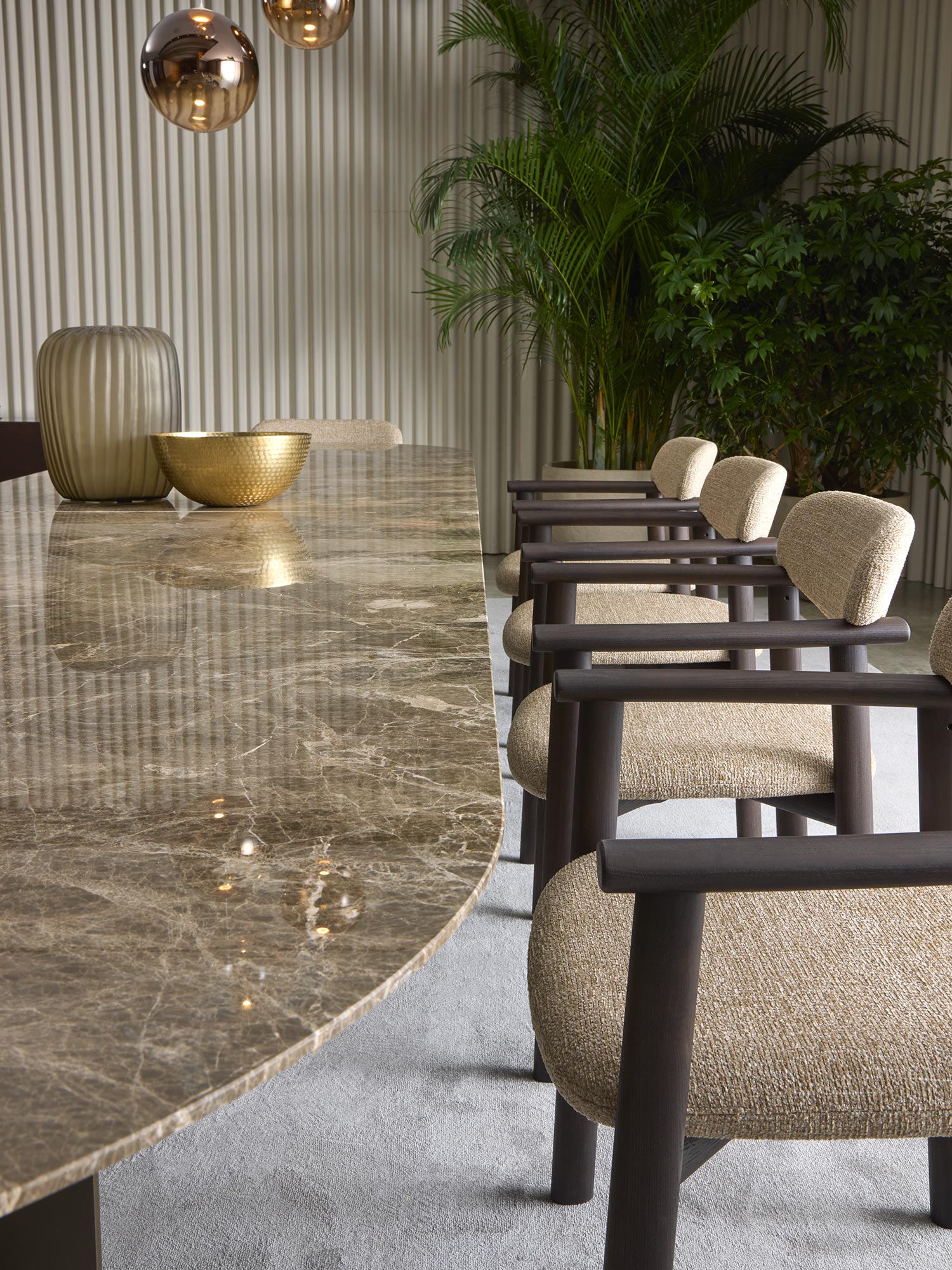 Стул Afra является ощутимым свидетельством того, как элегантность может проявляться через простоту. Его изысканная и легкая структура приводит к поразительному визуальному эффекту.