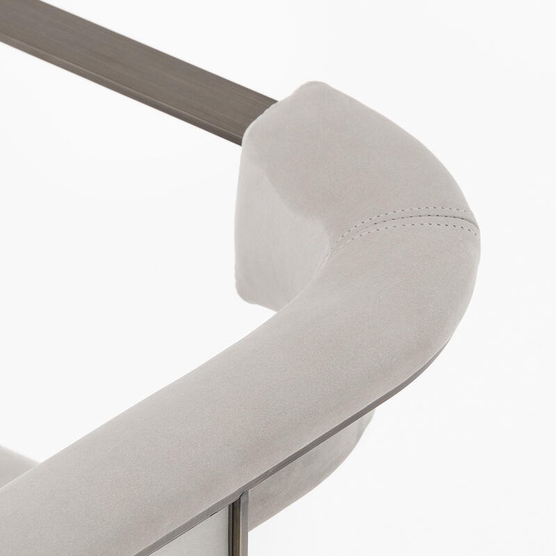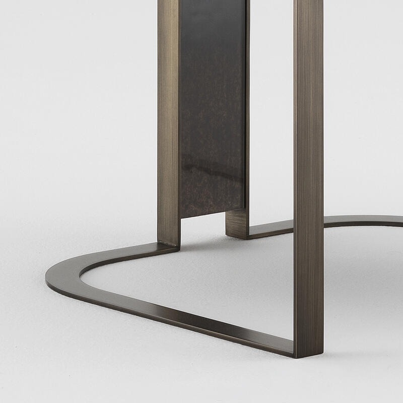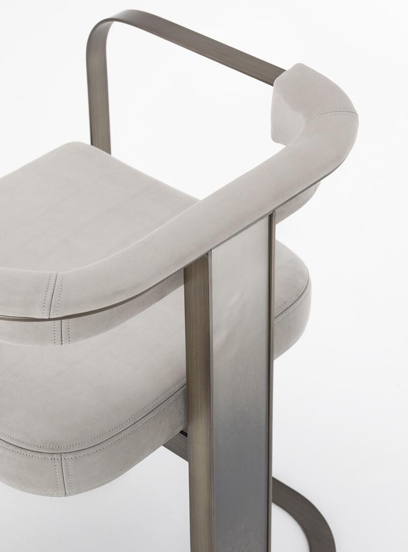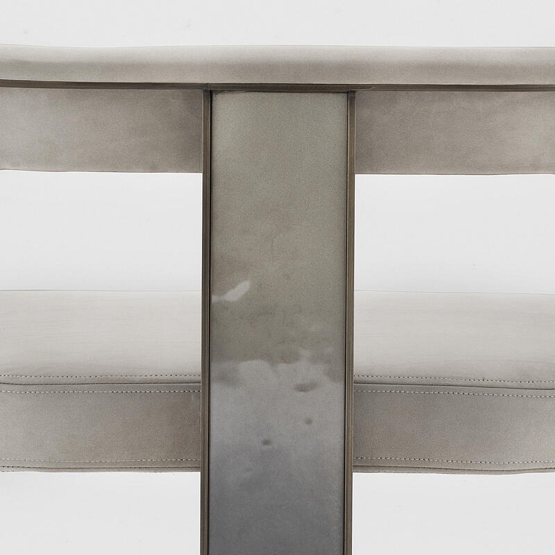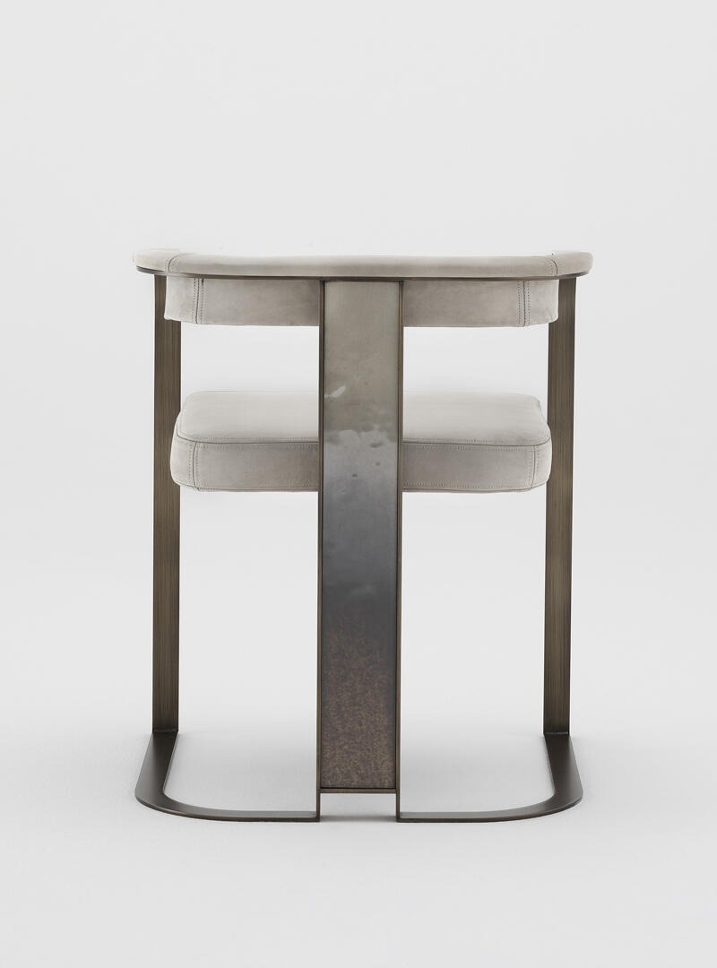 Металлическая конструкция с матовой отделкой из полированной латуни Сиденье и спинка обиты матовой кожей цвета слоновой кости.