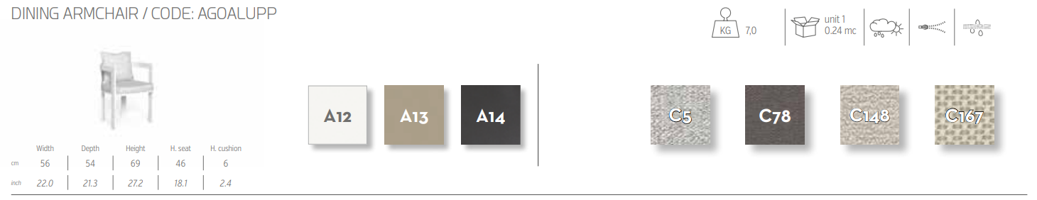Мягкость форм обеденного кресла Argo Alu компенсируется жесткостью алюминиевого каркаса. Это кресло идеально сочетается со столами и другими элементами коллекции. Качество материалов делает это кресло идеальным для использования на открытом воздухе.