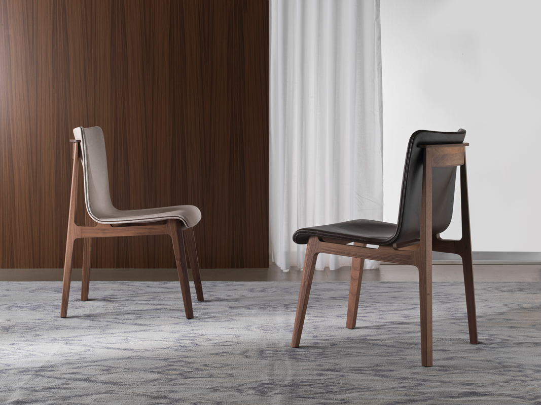 Кресло Babette имеет шарнирную, но линейную раму из массива дерева. Извилистые линии кресла, обитого тканью или кожей, придают ему богатство и комфорт.