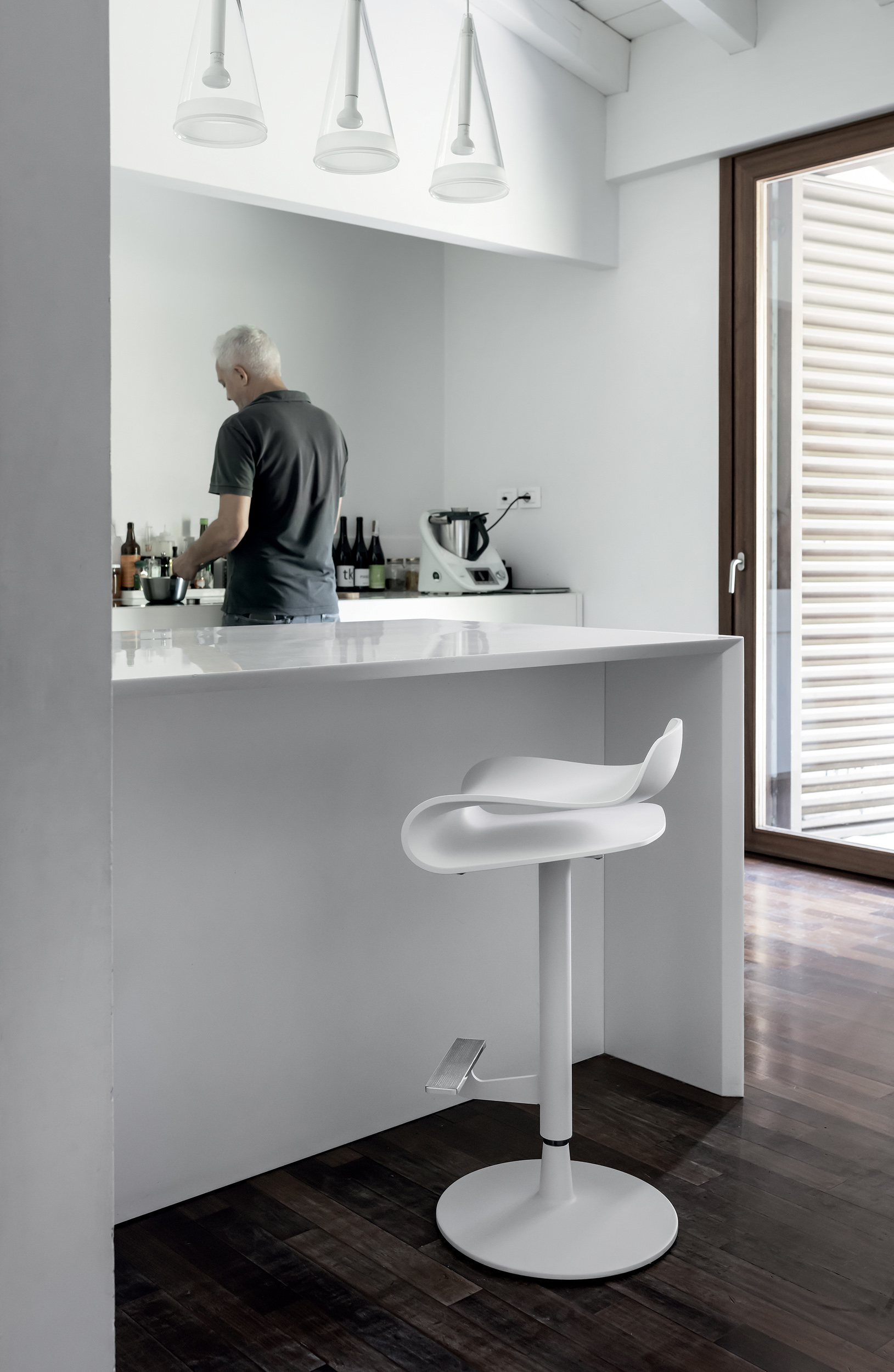 Доступен в трёх вариантах высоты: высокий, средний, низкий, с основанием из бука или регулируемой конструкцией. Широкая палитра цветов сиденья и основания позволяет подобрать модель под любой интерьер. Итальянское качество и внимание к деталям делают BCN стильным и функциональным решением для дома или коммерческих пространств.