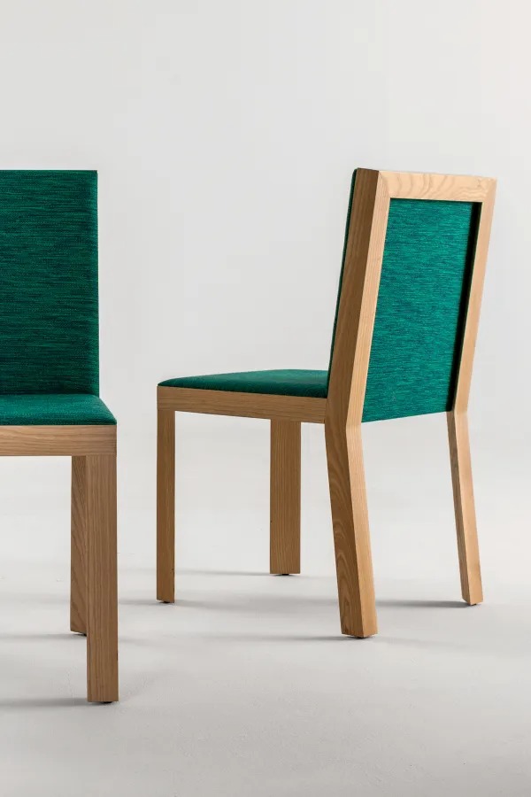 Стул с каркасом из натурального ясеня. Мягкие сиденье и спинка с набивкой из пенополиуретана и обивкой из кожи, бархата или ткани.