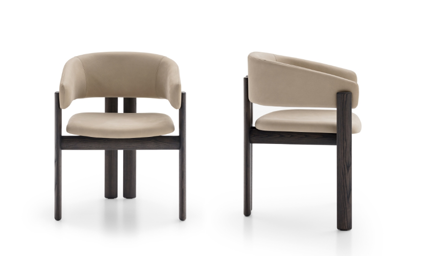 Привлекательные и изысканные формы воплощают в жизнь композицию стола-разных размеров — и стула-обтянутого кожей или