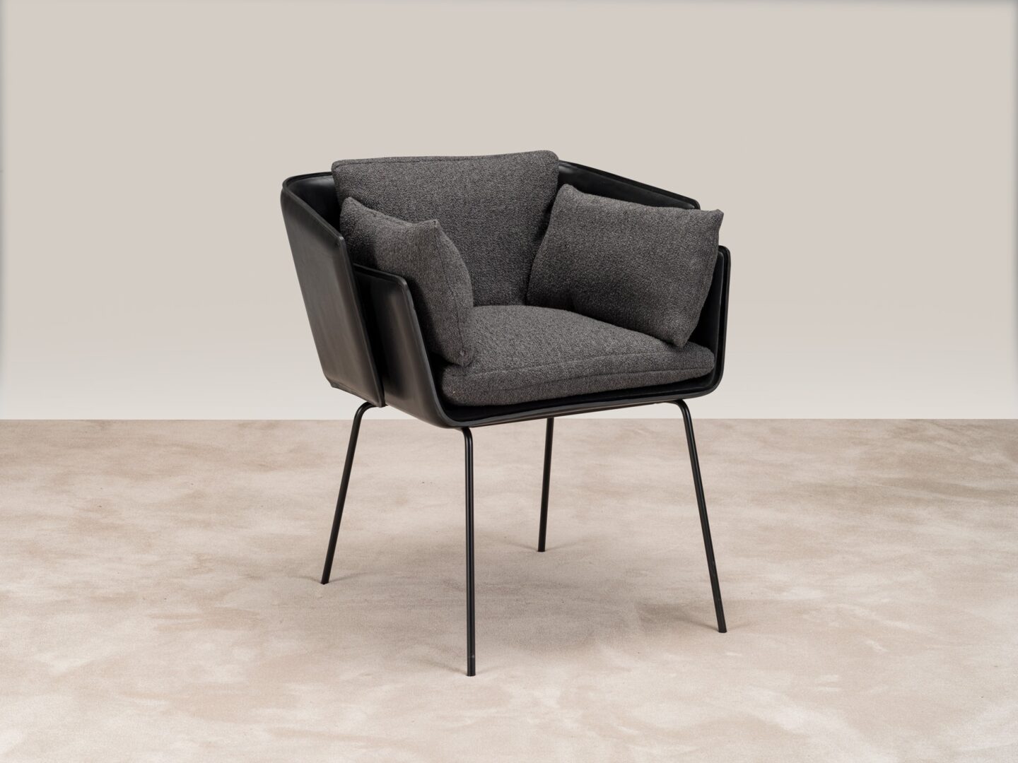 Blade Dining Armchair выражает сложный баланс между комфортом и формальной точностью. Легкая металлическая конструкция поддерживает обтянутое кожей тело, дополненное мягкими подушками, которые подчеркивают эргономику.