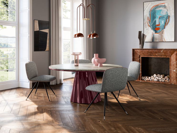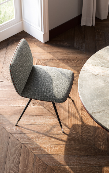 Изящные формы и мягкие объемы создают удобный и элегантный дизайн. Сочетая в себе классику и современность, Clelia обладает свежим и универсальным дизайном, напоминающим о благородных формах традиционных стульев bergère. Спинка и сиденье изготовлены из единого элемента и слегка наклонены назад для обеспечения максимального комфорта. Конструкция полностью скрыта за широкой обивкой, украшенной крупнозернистой каймой. Эклектичное основание имеет четыре сужающиеся книзу ножки, геометрия которых подчеркнута хромированными башмаками.