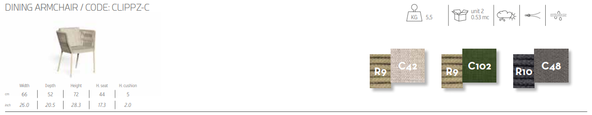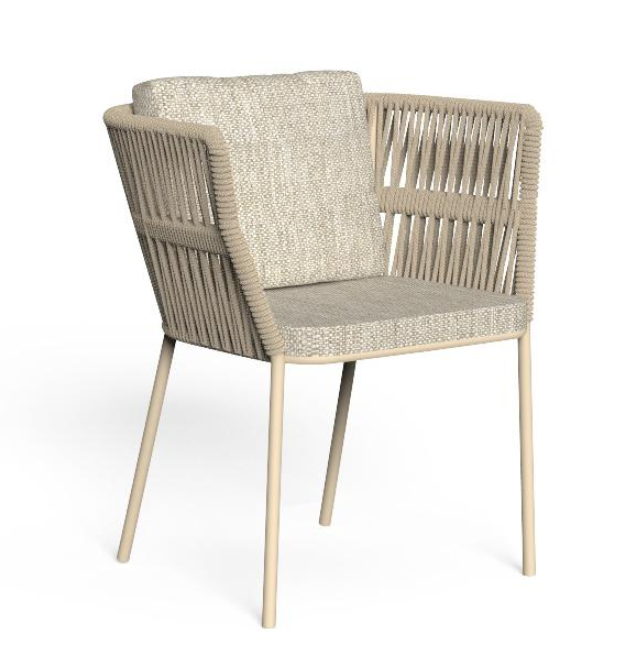 Стиль плетения из веревок, присущий коллекции, дополняет кресло, создавая стул, который завершает коллекцию Cliff.