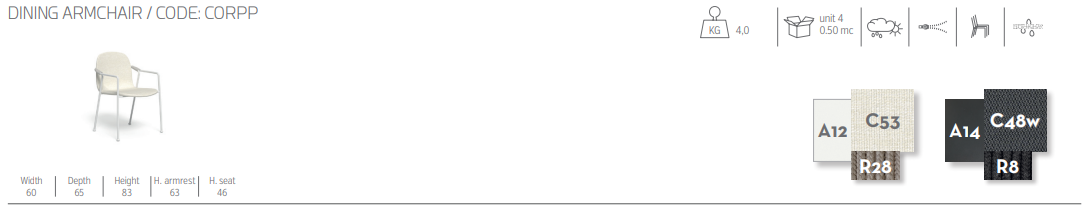 Функциональное и тонкое обеденное кресло Coral, вдохновленное идеей легкости, создано благодаря алюминиевой конструкции, которая обеспечивает его долговечность на открытом воздухе. Удобное и уютное сиденье отличается компактными размерами, что соответствует воздушному дизайну коллекции. Быстросохнущая поролоновая обивка, покрытая водонепроницаемыми тканями, легко стираемая и со съемными чехлами, делает кресло идеальным для использования на открытом воздухе.