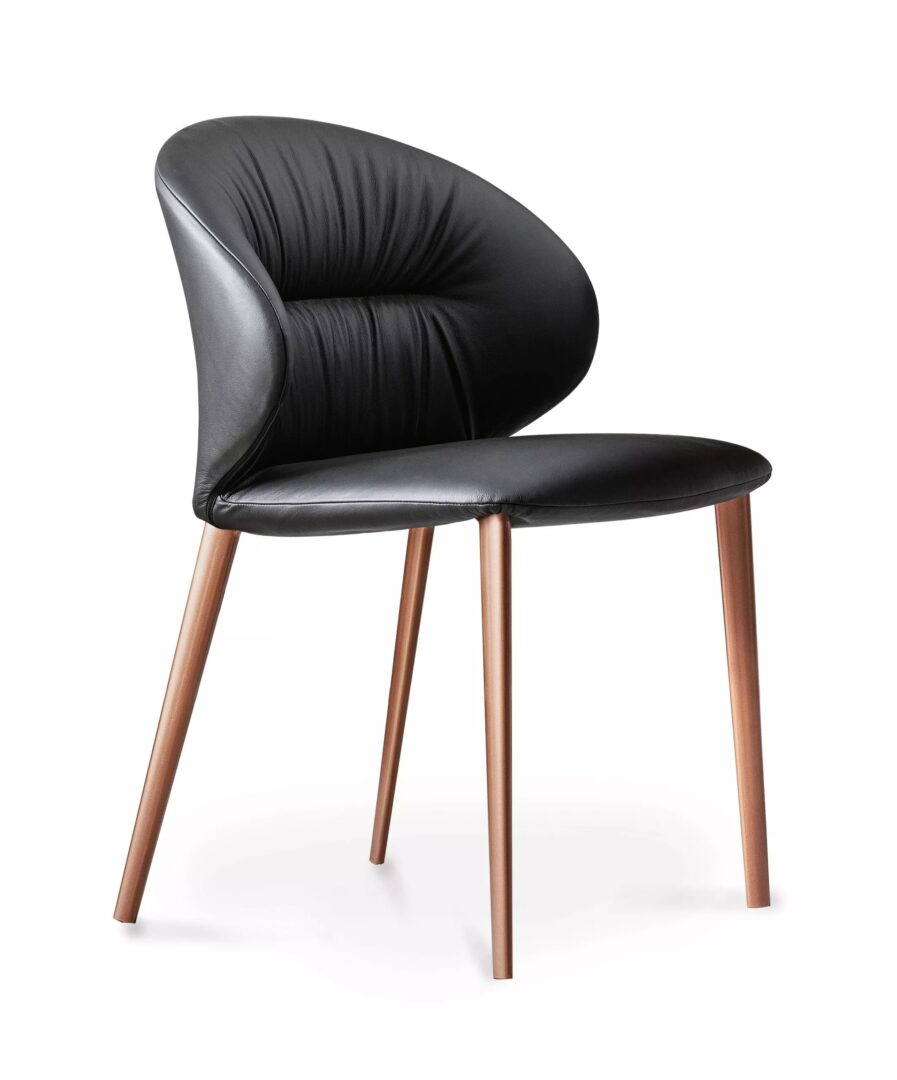 Стул со структурой из массива дерева и лакированной стали, с коническими ножками, переплетенной структурой и вращающимся основанием. Монолитное сидение полностью в обивке из экокожи, экологическая кожа премиум, технического бархата,ткани Nordic, чистой шерсти, бархата, , ткани Kvadrat field, ткани Kvadrat Coda и кожи премиум.