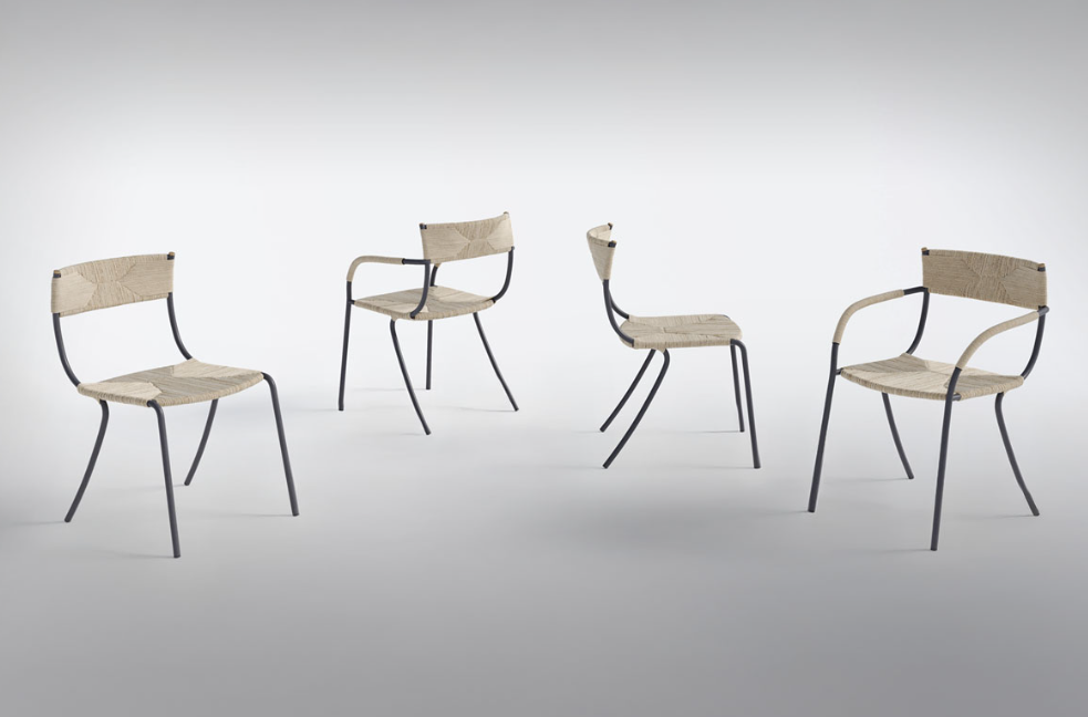 Elide — это легкое и функциональное кресло, доступное как с подлокотниками, так и без них. Его конструкция, выполненная из металла, окрашенного в черный цвет эпоксидной смолой, отличается тонким непрерывным профилем, который заканчивается двумя латунными деталями. Спинка и сиденье изготовлены вручную из влагостойкого бумажного шнура, что обеспечивает баланс между мастерством исполнения и промышленной точностью. Разработанный для использования в помещениях, он сочетает в себе материалы и отделку в лаконичной, но самобытной форме.