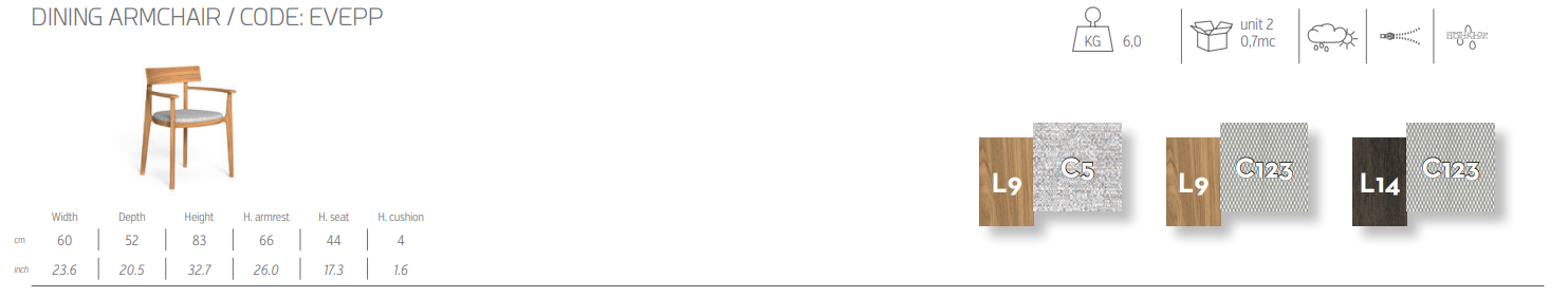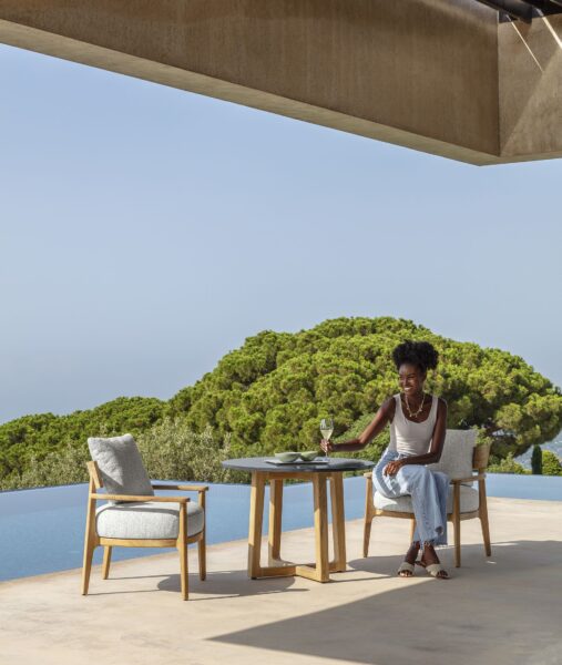 Обеденный стул Ever отличается прочной деревянной конструкцией, которая смягчается мягкими линиями его дизайна. Подушки придают этому предмету мебели культовую эстетику, создавая удобное и располагающее к себе сиденье. Текстура материалов в сочетании с минималистичным дизайном делают его идеальным предметом мебели для жизни на открытом воздухе.