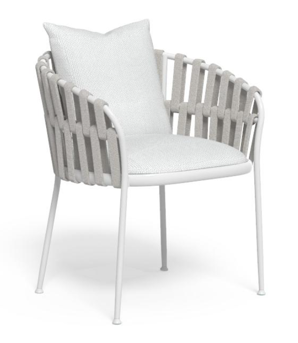 Каркасное обеденное кресло объединяет в себе все ключевые элементы этой коллекции. Тонкая алюминиевая конструкция сочетается с мягкими подушками на спинке и переплетением мягкой обивки. Изысканное и чувственное, это лучшее декоративное дополнение для оформления вашей обеденной зоны на открытом воздухе.