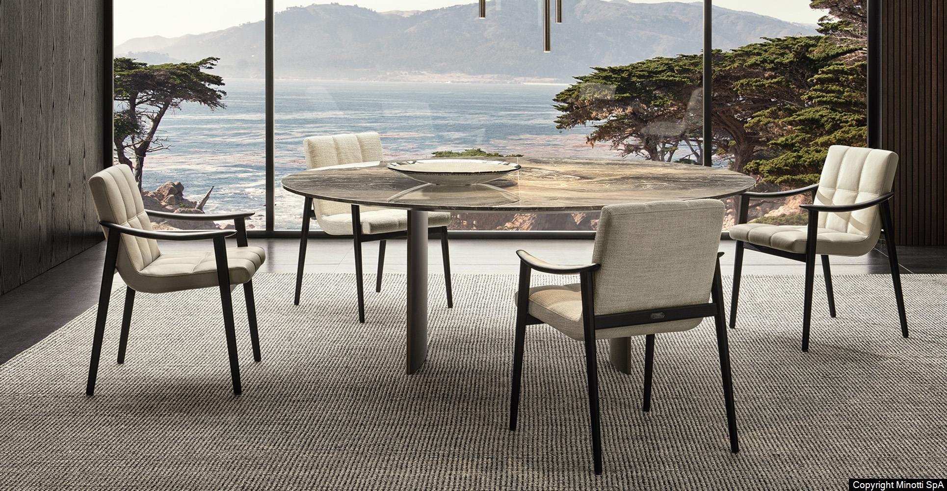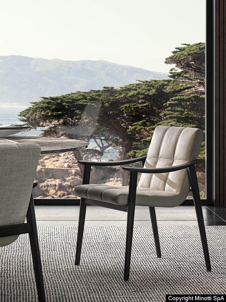 MINOTTI использует только натуральные материалы премиум-класса. Каркас стула выполнен из отборной древесины, а обивка предлагается в двух вариантах: