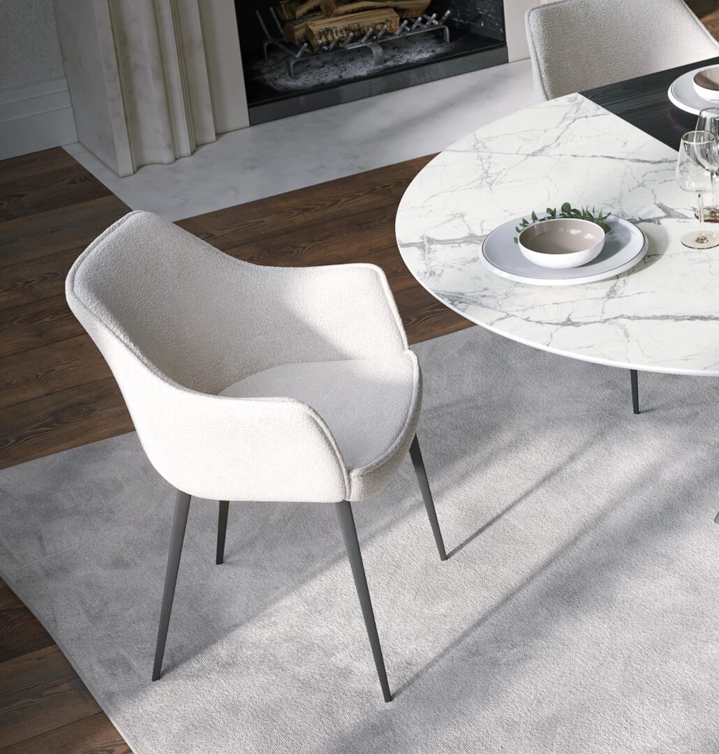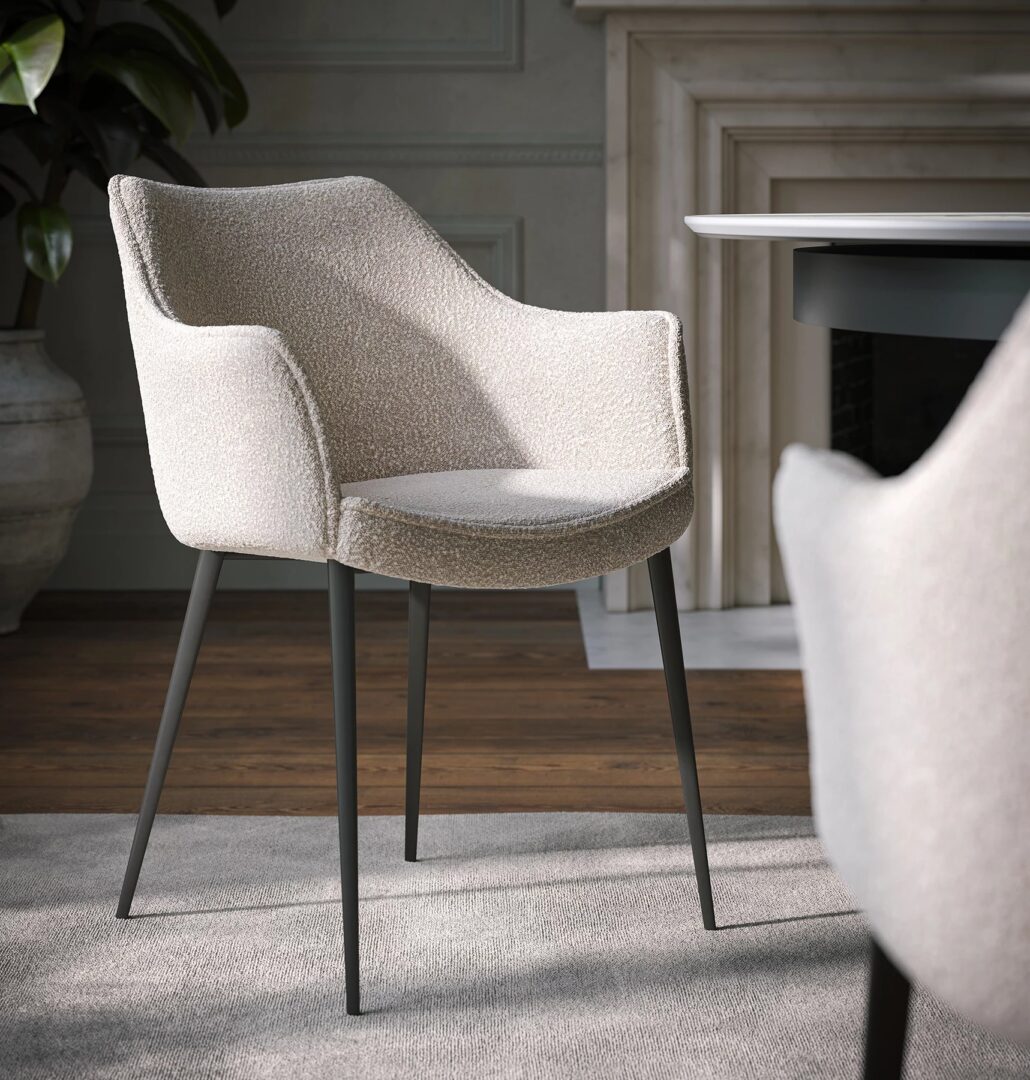 Комфорт и естественность являются отличительными чертами сиденья Gaia, сделанного уютным и уютным благодаря щедрой обивке и подлокотникам. Металлические ножки придают легкость и элегантность.
