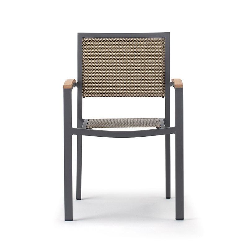 Складываемый стул, алюминиевая рама, покрытый текстиленом и технодревесиной, толщиной 1,5 мм.