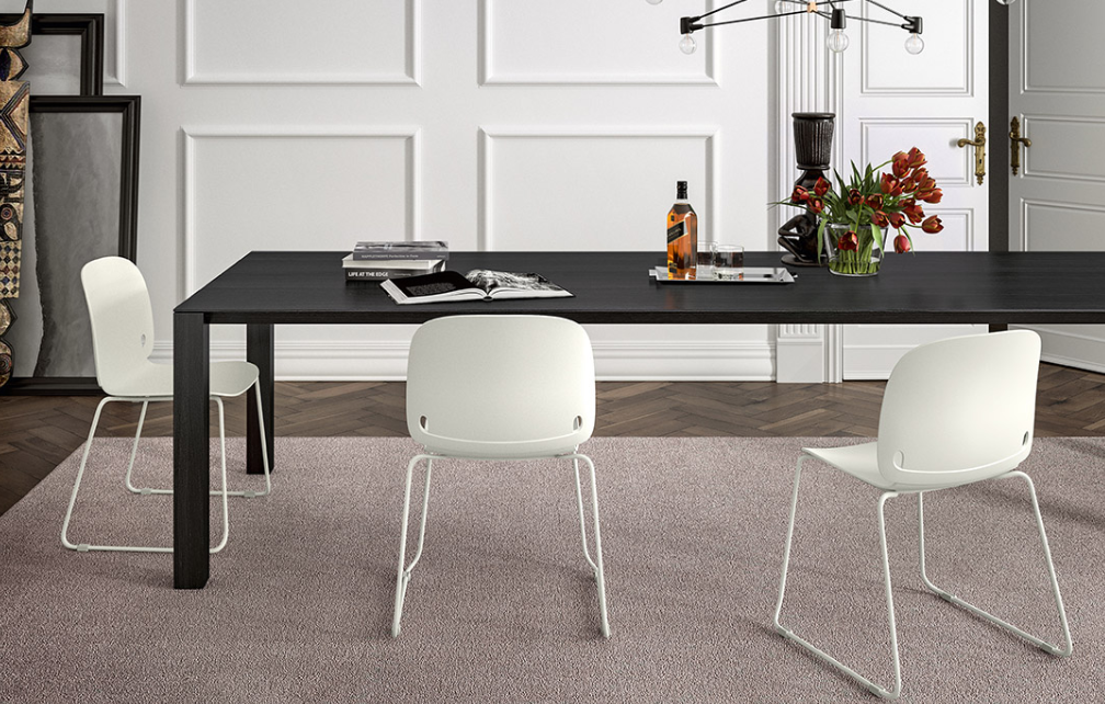 Дизайн essential выражает особый характер: основание с его тонкими линиями поддерживает удобное сиденье, приятное на ощупь. При взгляде сзади на спинку видны сложенные подлокотники, которые обеспечивают удобный захват для подъема и перемещения кресла. Штабелируемая конструкция позволяет оптимизировать пространство, используемое для приема гостей. Благодаря своей форме и характеристикам материалов, Intro также является отличным выбором для любого помещения в доме.