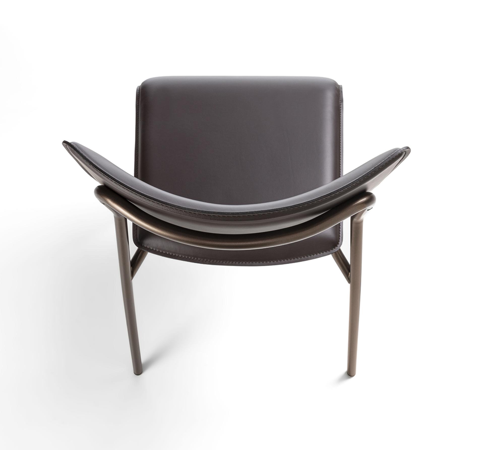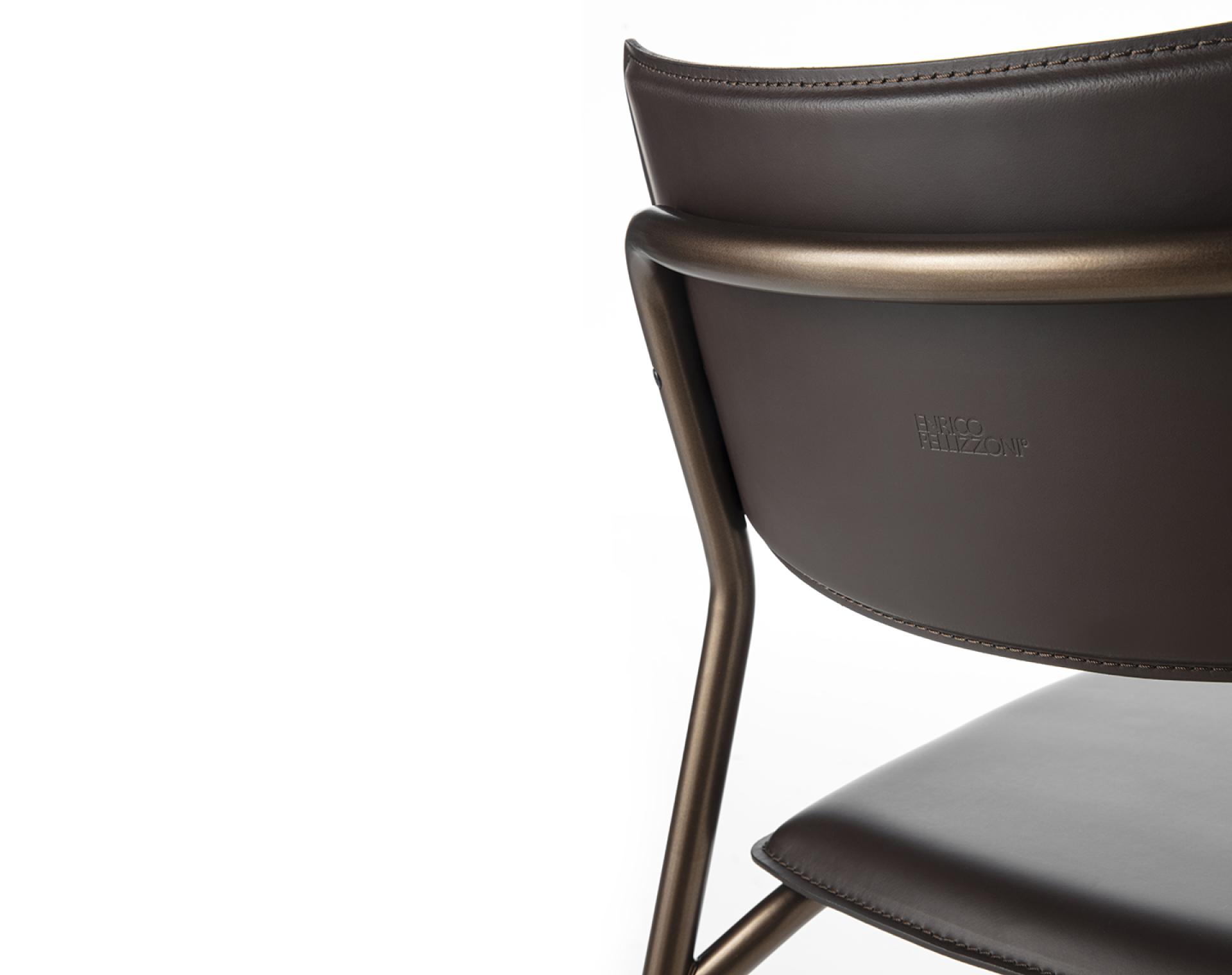 Металлическая трубчатая конструкция круглого сечения с сиденьем и спинкой из многослойного дерева, обтянутыми кожей. Легкое, удобное, универсальное сиденье с элегантным сочетанием материалов.