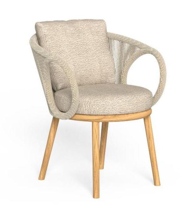 Обеденный стул Karen напоминает о типичной красоте африканских стран. Дизайн отличается кольцевыми подлокотниками и спинкой, которая изящно огибает сиденье, напоминая о царственности трона. Переплетение бесчисленных нитей ткани раскрывает мастерство изготовления кресла, которое является уютным убежищем, придавая окружающей обстановке богатый стиль и индивидуальность.