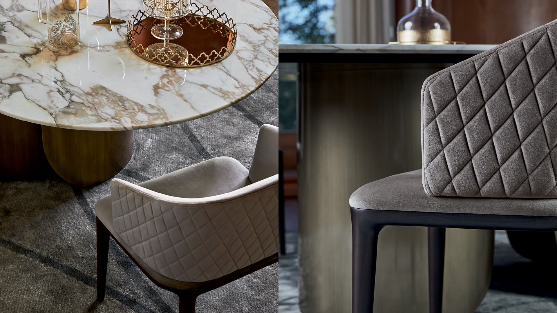Стеганое кресло Louise отличается изящным дизайном и органичной эстетикой, подчеркнутыми рамой из массива ясеня ручной работы. Оно оснащено мягким сиденьем и стеганой в ромбах спинкой.