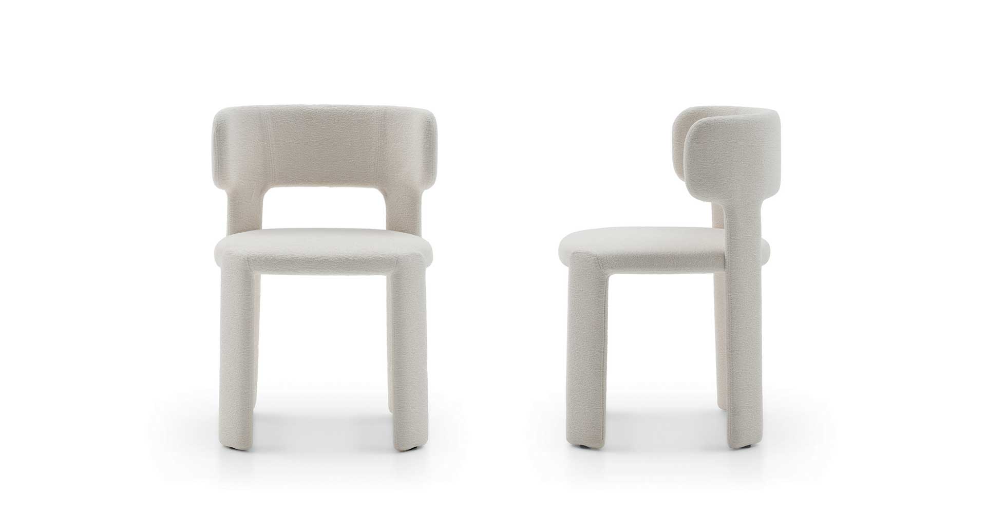 Полностью мягкий стул, мягкий и обволакивающий, но в то же время легкий. Вместе с Люси дизайнеры E-ggs делают ткань главной героиней, которая покрывает все сиденье до земли, и играют с полными и пустыми, геометрическими объемами и округлыми линиями, чтобы получить удобную, но не тяжелую форму. Спинка, подлокотники и задние ножки, объединенные в один элемент, усиливают ощущение гостеприимства.