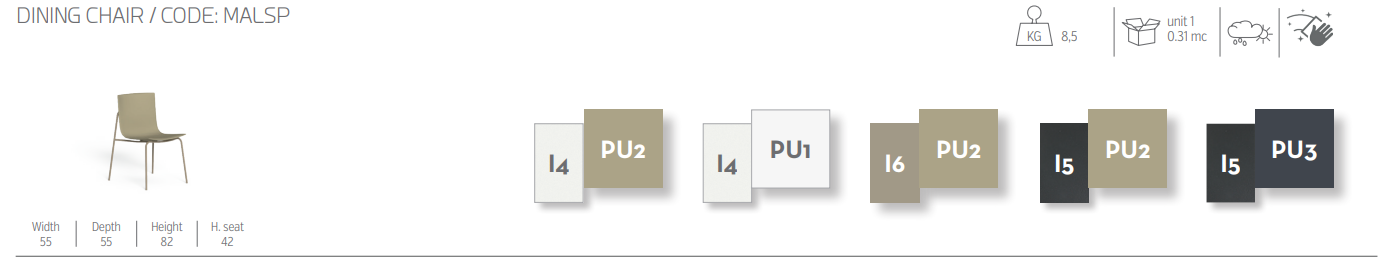 Широкое сиденье обеденного стула Malè из пластика опирается на жесткую стальную раму прямоугольной формы, что делает его идеальным дополнением к вашей садовой мебели.