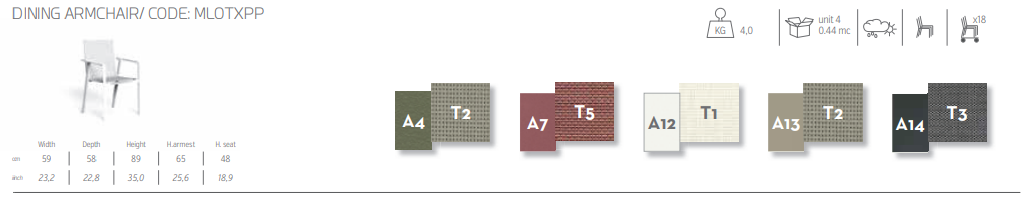 Романтическая элегантность и внимание к деталям — отличительные черты уличного кресла Milo. Алюминиевая конструкция с порошковым покрытием и сиденье из текстилена — синтетического материала, стойкого к сжатию, разрывам, атмосферным воздействиям и ультрафиолетовым лучам. Кресло можно штабелировать. Опционально доступна подушка светло- или темно-серого цвета.