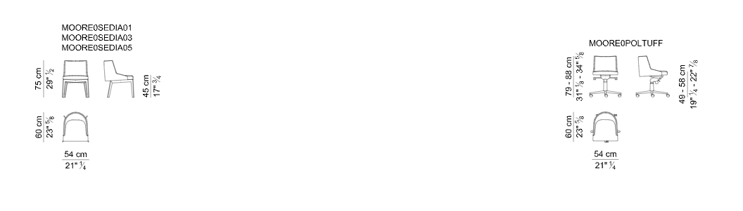 Moore — это коллекция, которая отдает дань столовым традициям благодаря строгому и пропорциональному стулу и основанию, напоминающему стол из той же коллекции, чья очевидная металлическая структура напоминает форму самурайских мечей, памятных японцам.